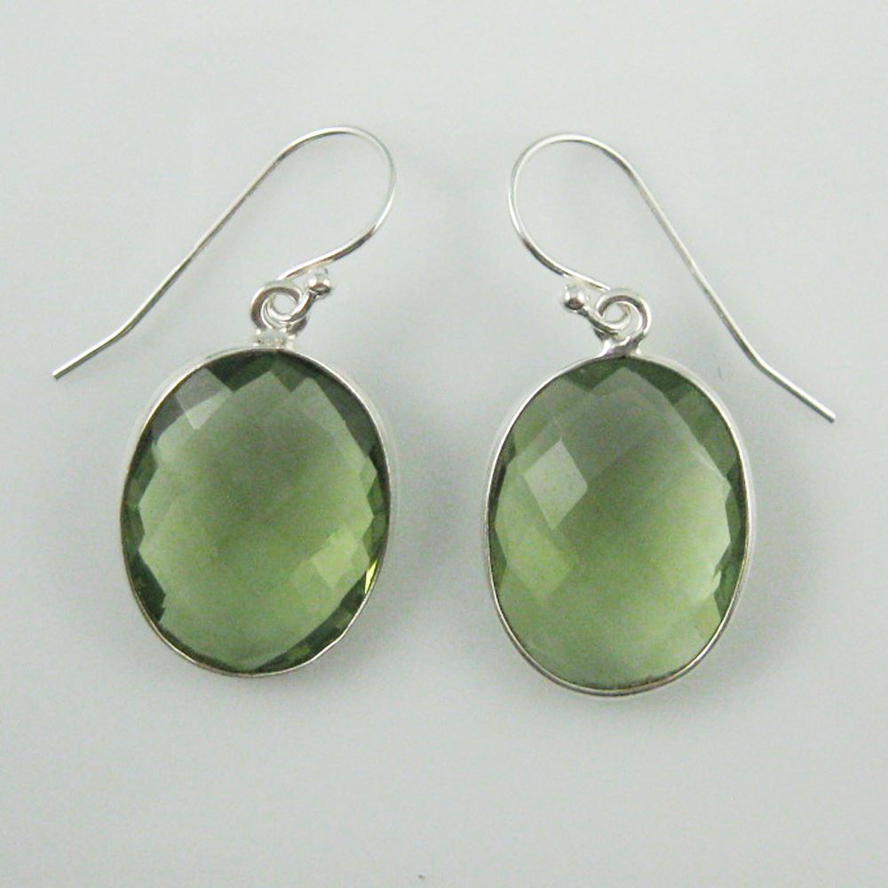 Stone: Green Amethyst QuartzStone Shape: Faceted oval shape on both sides. Pendant Measurement: 19mm long, stone is 14mm. Total Earring Length: 30mm