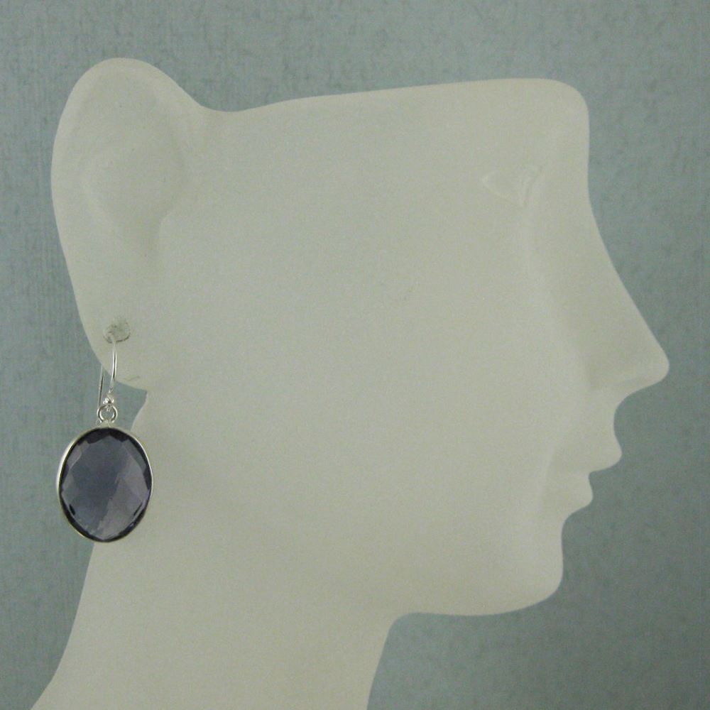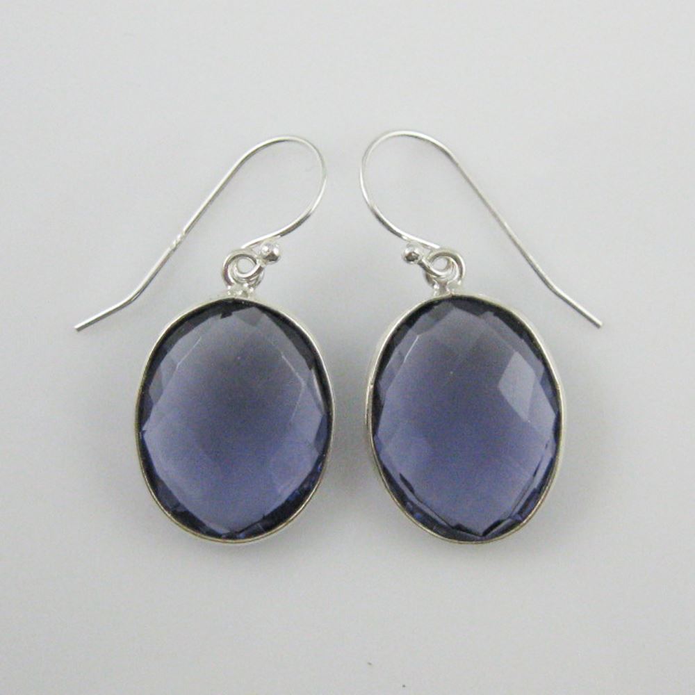 Stone: Iolite QuartzStone Shape: Faceted oval shape on both sides. Pendant Measurement: 19mm long, stone is 14mm. Total Earring Length: 30mm