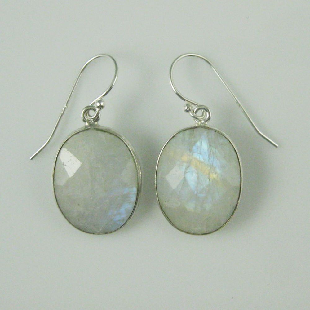 Stone: MoonstoneStone Shape: Faceted oval shape on both sides. Pendant Measurement: 19mm long, stone is 14mm. Total Earring Length: 30mm