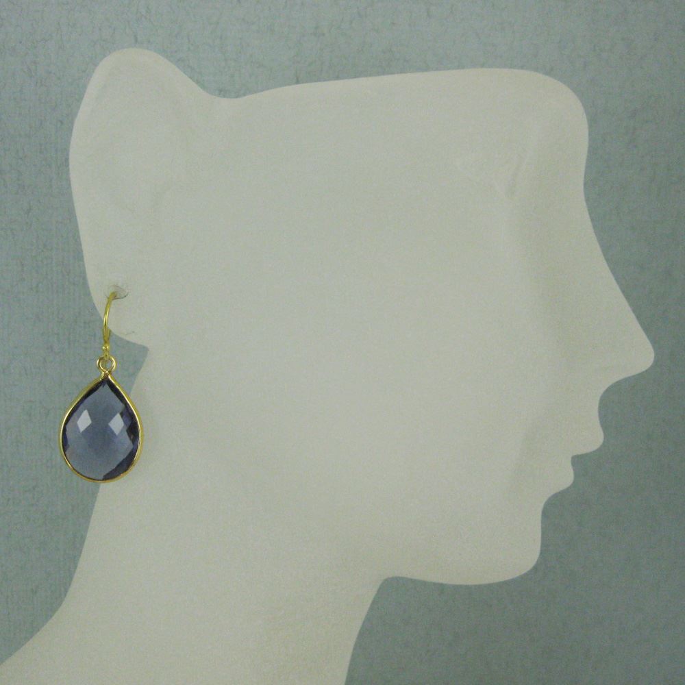 Stone: Iolite QuartzStone Shape: Faceted pear shape on both sides. Pendant Measurement: 22mm long, stone is 13x18mm. Total Earring Length: 30mm
