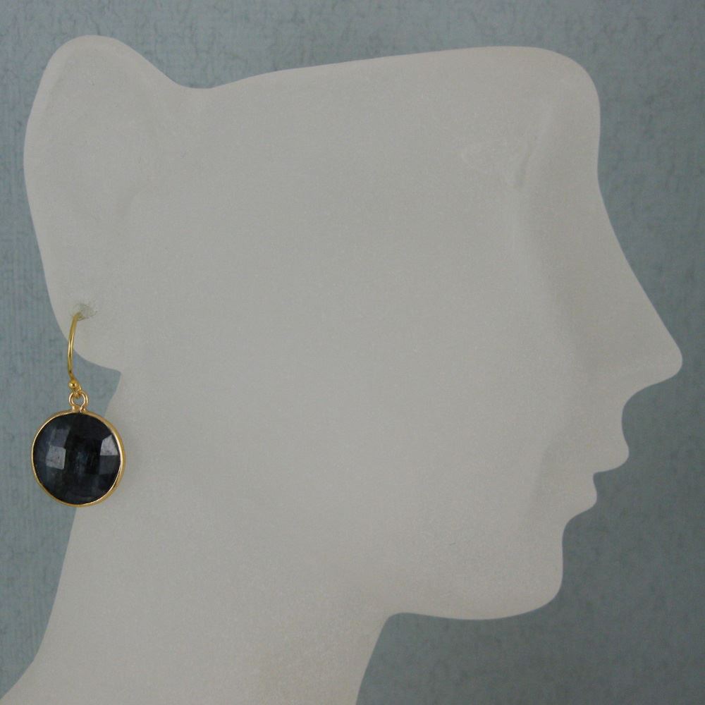 Stone: Blue Sapphire Dyed- Dyed RopadaStone Shape: Faceted coin shape on both sides. Pendant Measurement: 19mm long, stone is 14mm. Total Earring Length: 25mm