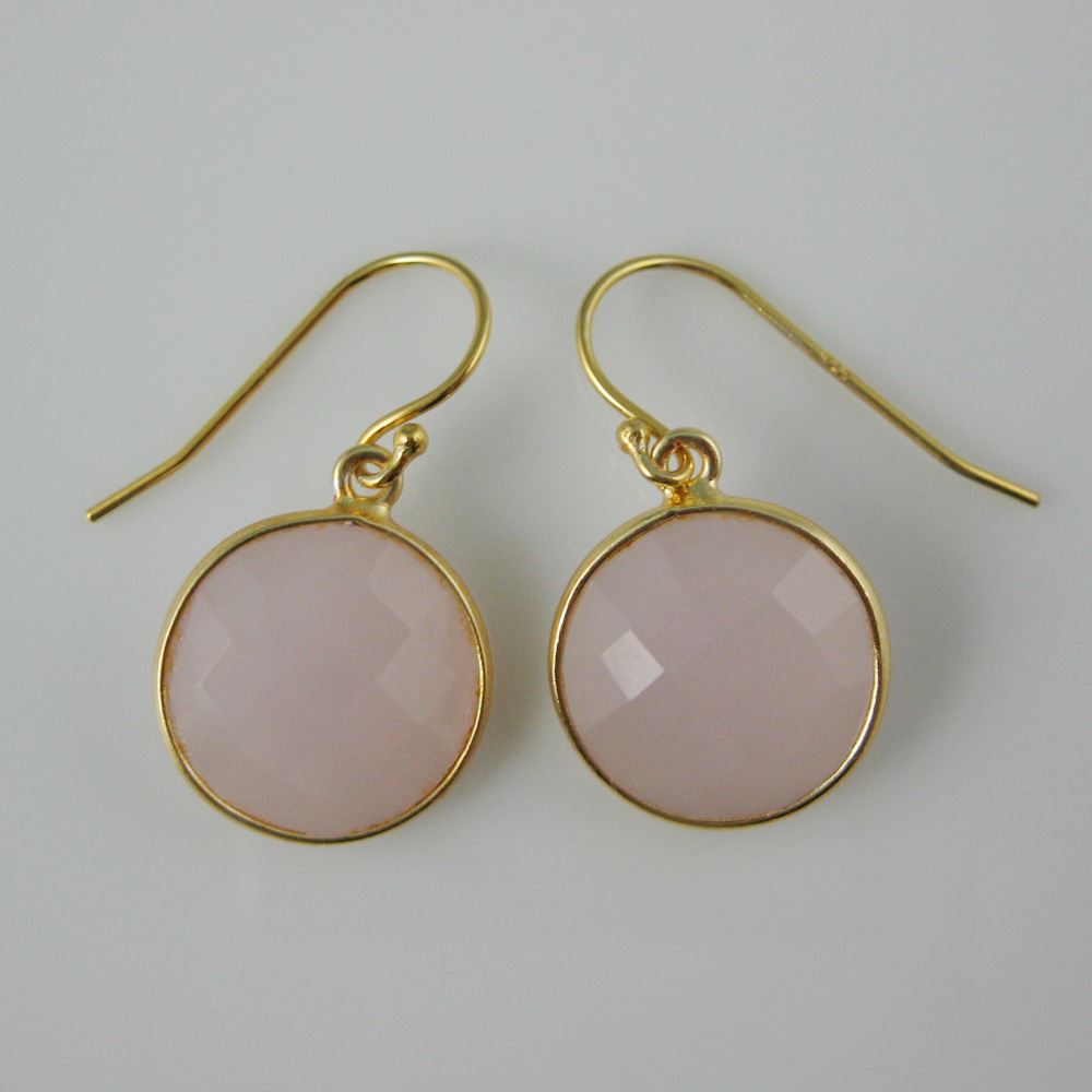 Stone: Pink ChalcedonyStone Shape: Faceted coin shape on both sides. Pendant Measurement: 19mm long, stone is 14mm. Total Earring Length: 25mm
