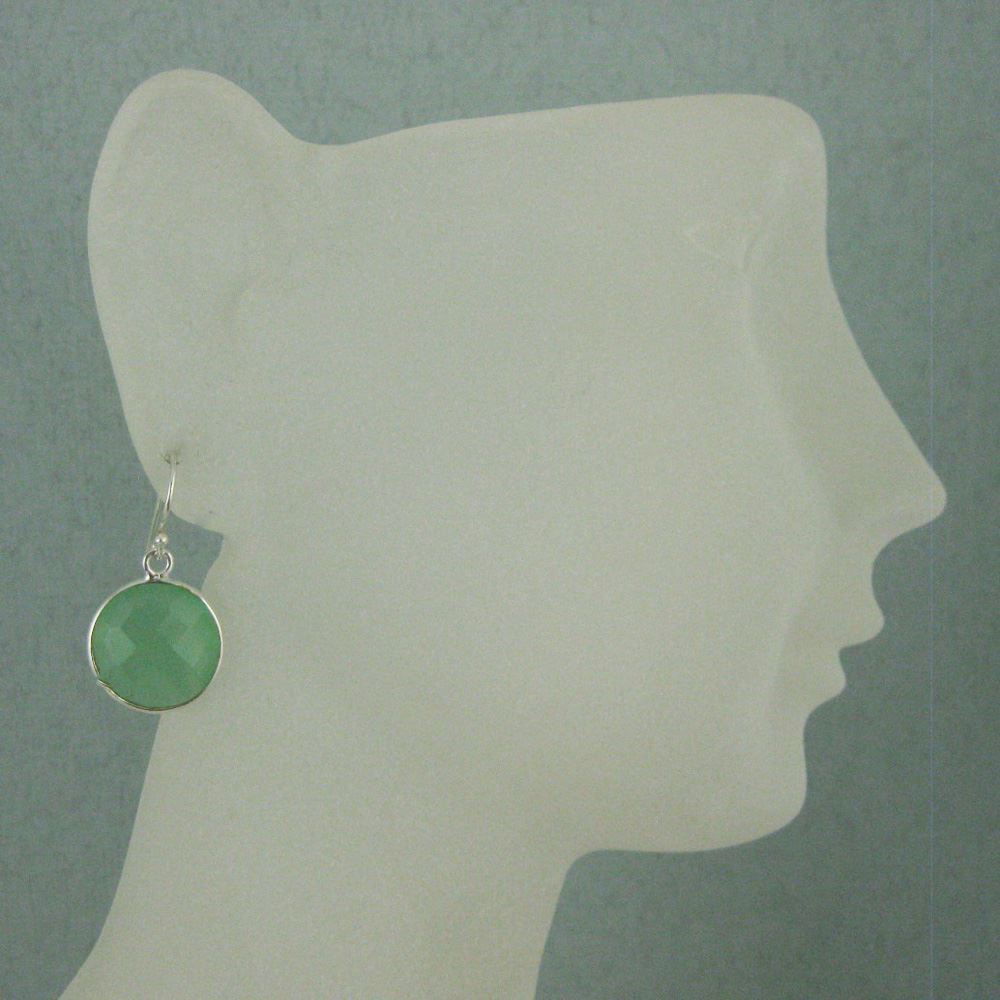 Stone: Prenite ChalcedonyStone Shape: Faceted coin shape on both sides. Pendant Measurement: 19mm long, stone is 14mm. Total Earring Length: 25mm