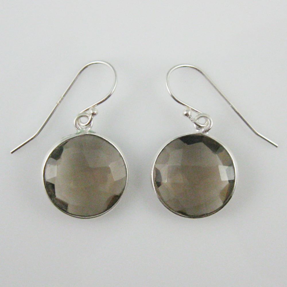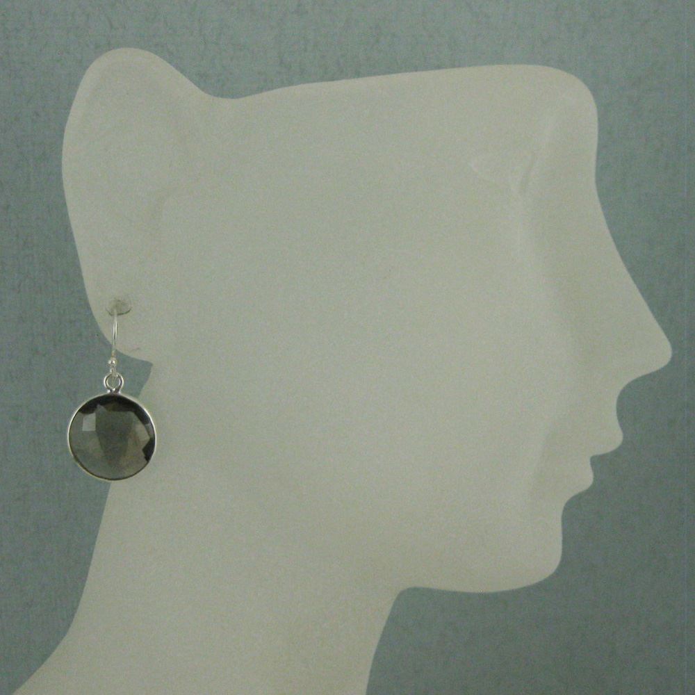 Stone: Smoky QuartzStone Shape: Faceted coin shape on both sides. Pendant Measurement: 19mm long, stone is 14mm. Total Earring Length: 25mm