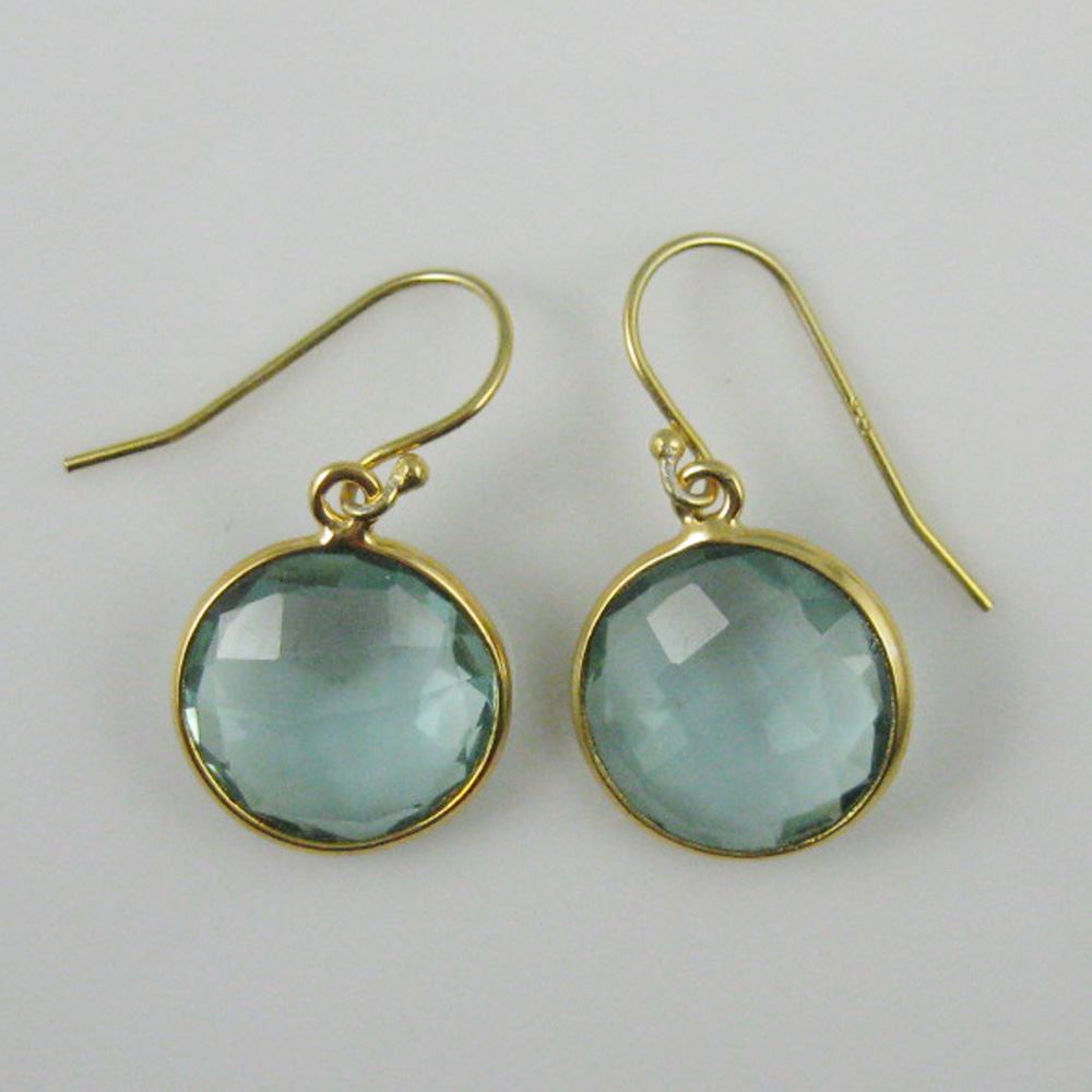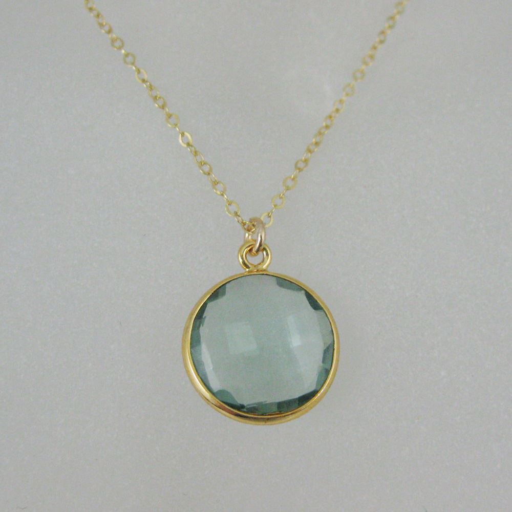Bezel Gemstone Round Pendant Necklace & Earrings-Gold Plated-Aqua Quartz (16-24")