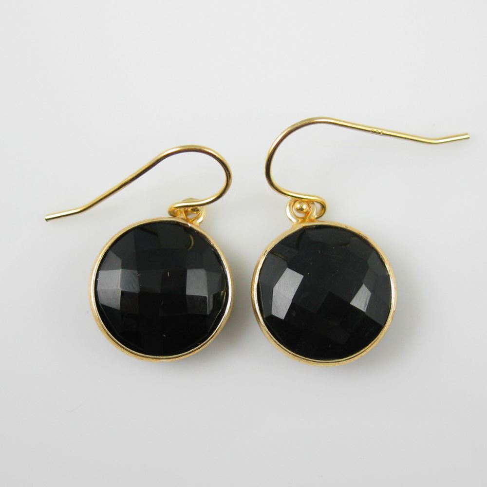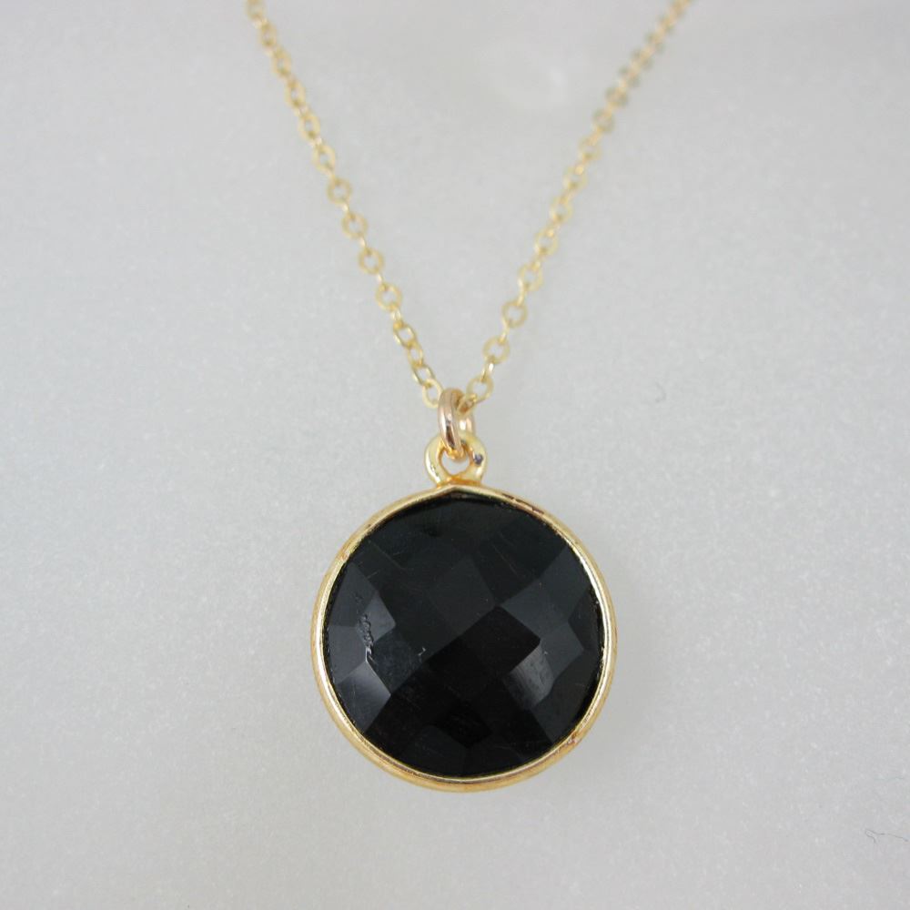Stone: Black OnyxStone Shape: Faceted coin shape on both sides. Pendant Measurement: 19mm long, stone is 14mm.