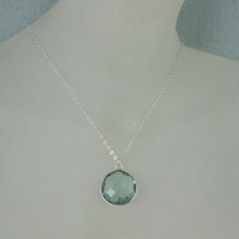 Stone: Aqua QuartzStone Shape: Faceted coin shape on both sides. Pendant Measurement: 19mm long, stone is 14mm. Chain Length: 16 to 24 inches. If you would like a different length please contact the seller.