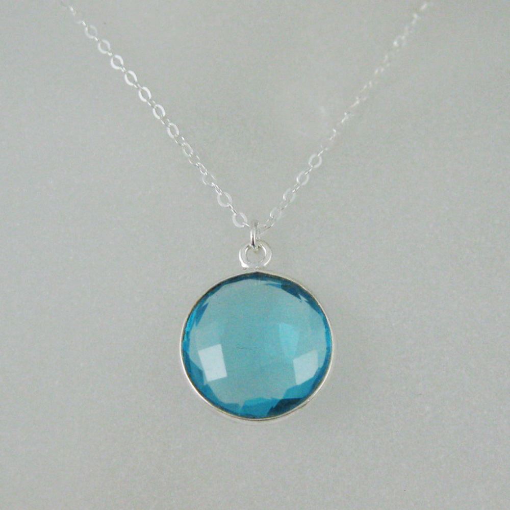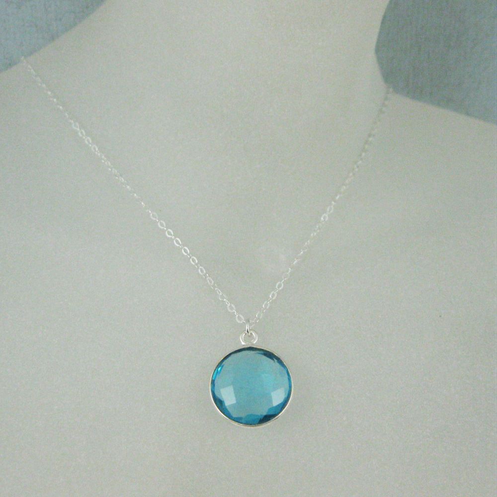 Stone: Blue TopazStone Shape: Faceted coin shape on both sides. Pendant Measurement: 19mm long, stone is 14mm. Chain Length: 16 to 24 inches. If you would like a different length please contact the seller.