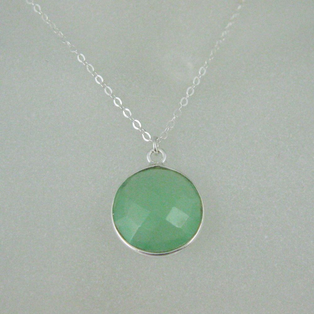 Stone: Prenite ChalcedonyStone Shape: Faceted coin shape on both sides. Pendant Measurement: 19mm long, stone is 14mm. Chain Length: 16 to 24 inches. If you would like a different length please contact the seller.