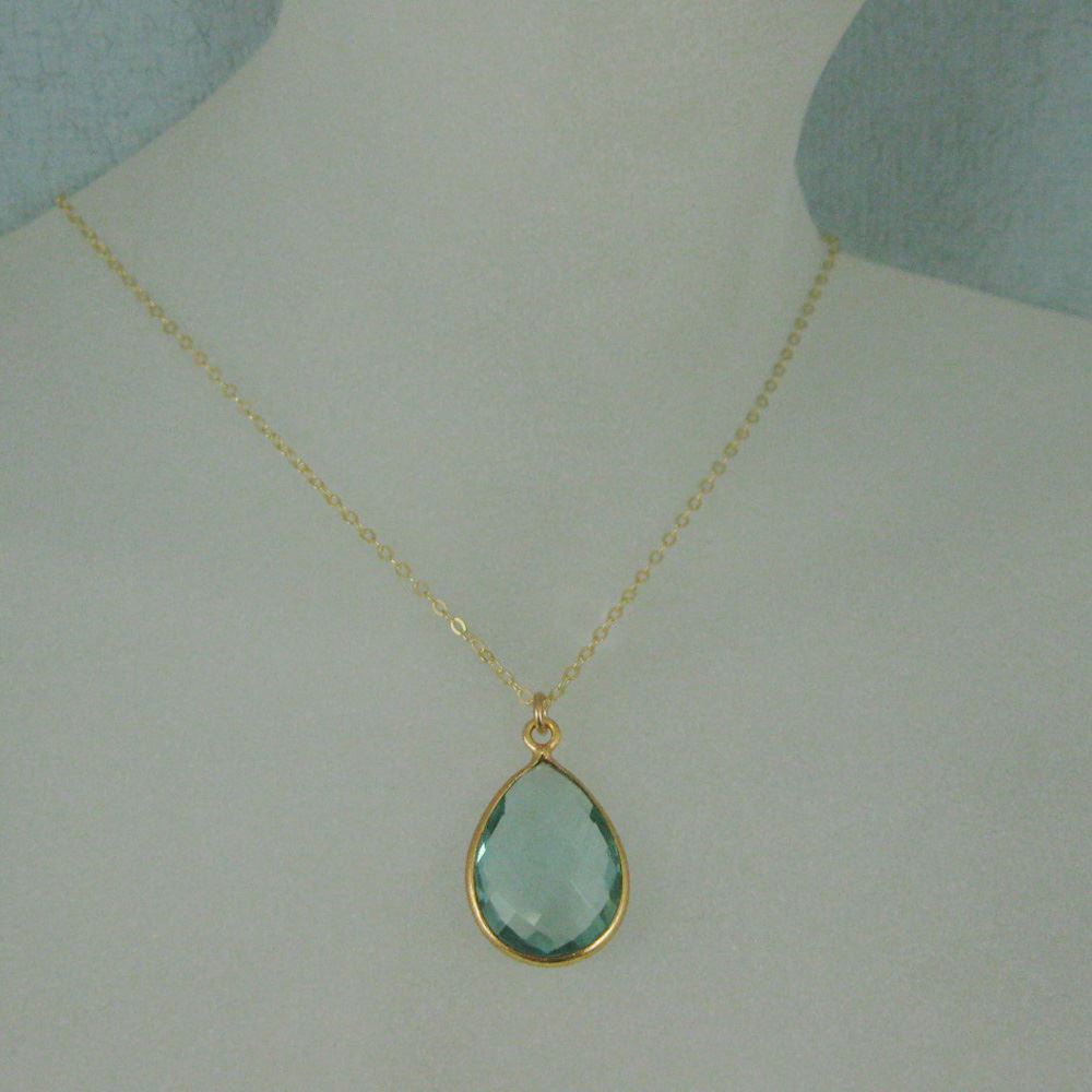 Stone: Aqua QuartzStone Shape: Faceted pear shape on both sides. Pendant Measurement: 22mm long, stone is 13x18mm. Chain Length: 16 to 24 inches. If you would like a different length please contact the seller.