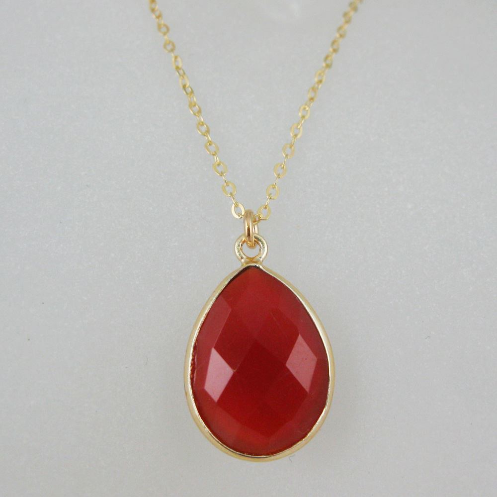 Stone: CarnelianStone Shape: Faceted pear shape on both sides. Pendant Measurement: 22mm long, stone is 13x18mm. Chain Length: 16 to 24 inches. If you would like a different length please contact the seller.