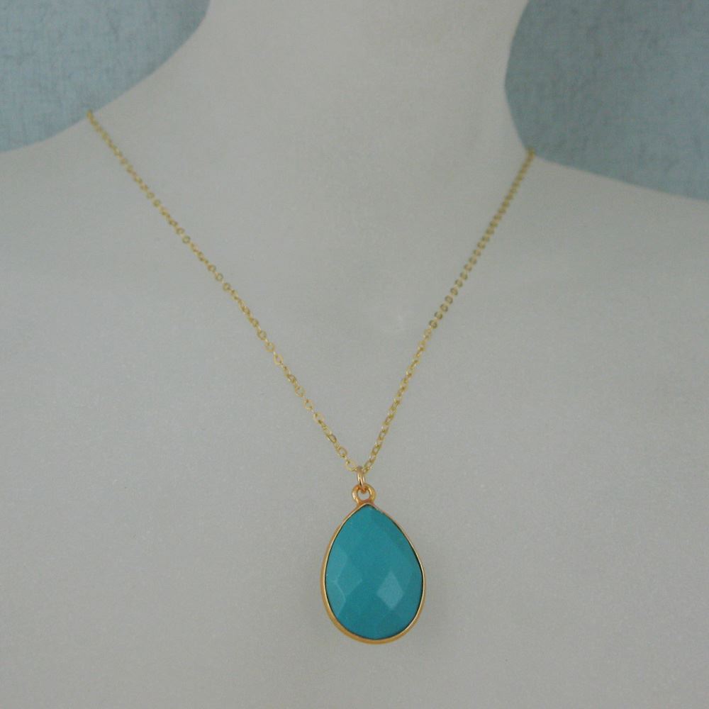 Stone: TurquoiseStone Shape: Faceted pear shape on both sides. Pendant Measurement: 22mm long, stone is 13x18mm. Chain Length: 16 to 24 inches. If you would like a different length please contact the seller