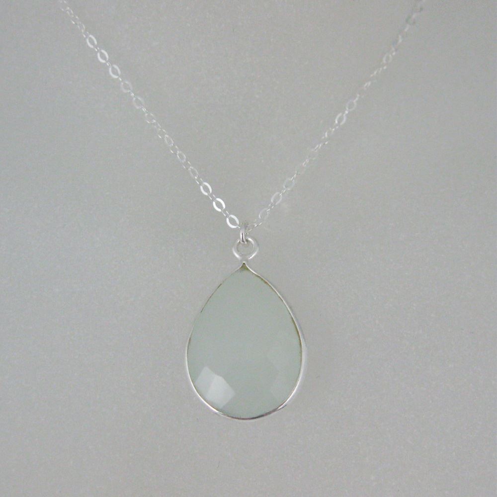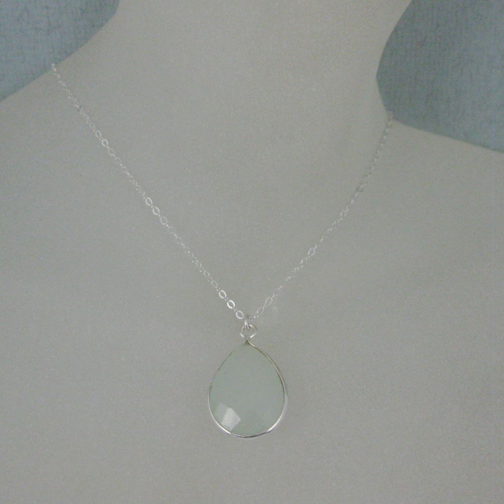 Stone: Aqua ChalcedonyStone Shape: Faceted pear shape on both sides. Pendant Measurement: 22mm long, stone is 13x18mm. Chain Length: 16 to 24 inches. If you would like a different length please contact the seller.
