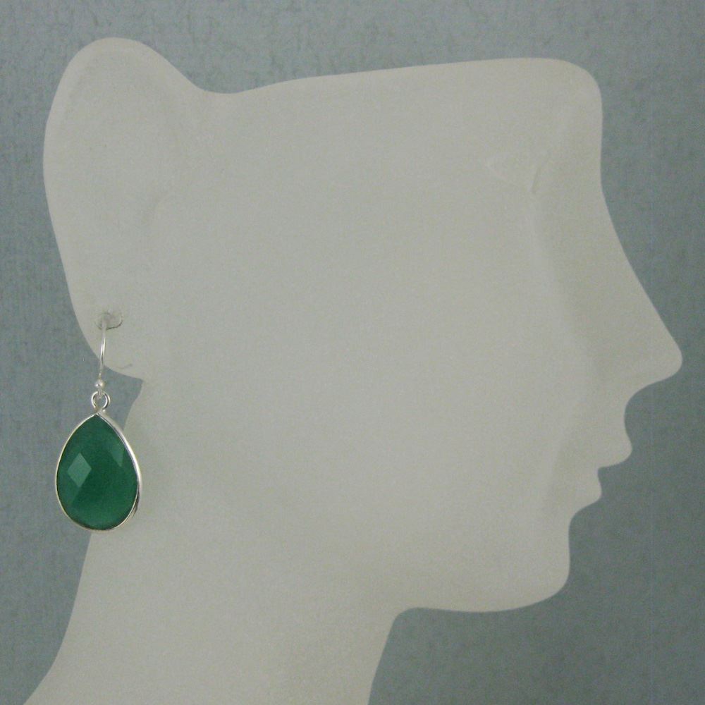 Stone: Green OnyxStone Shape: Faceted tear shape on both sides. Pendant Measurement: 22mm long, stone is 13x18mm. Total Earring Length: 30mm
