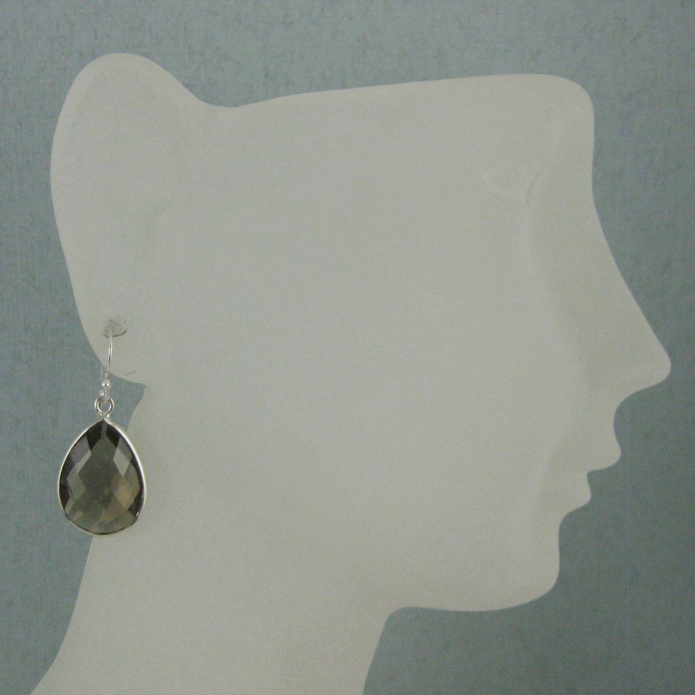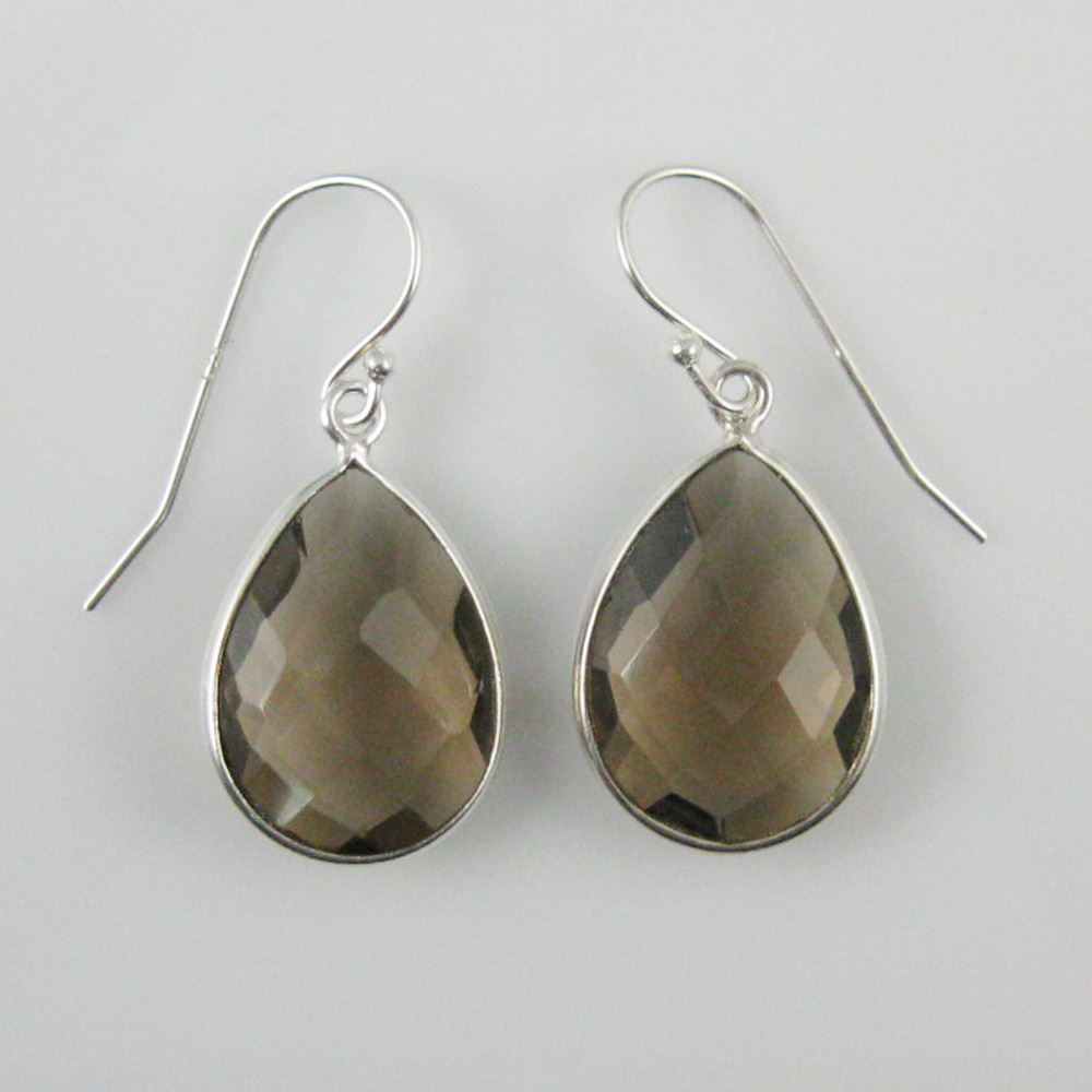 Stone: Smoky QuartzStone Shape: Faceted tear shape on both sides. Pendant Measurement: 22mm long, stone is 13x18mm. Total Earring Length: 30mm