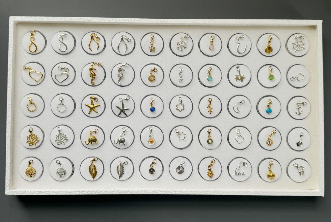 This kit includes 50 Charms in Silver and Gold over Sterling Silver!