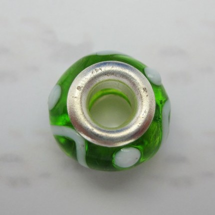 This listing is for 1 piece of glass,smooth donut shape pandora style bead with colorful design. Size : 9mm L, 15mm W. Approximate hole size: 5mm. Material in middle: Metal.