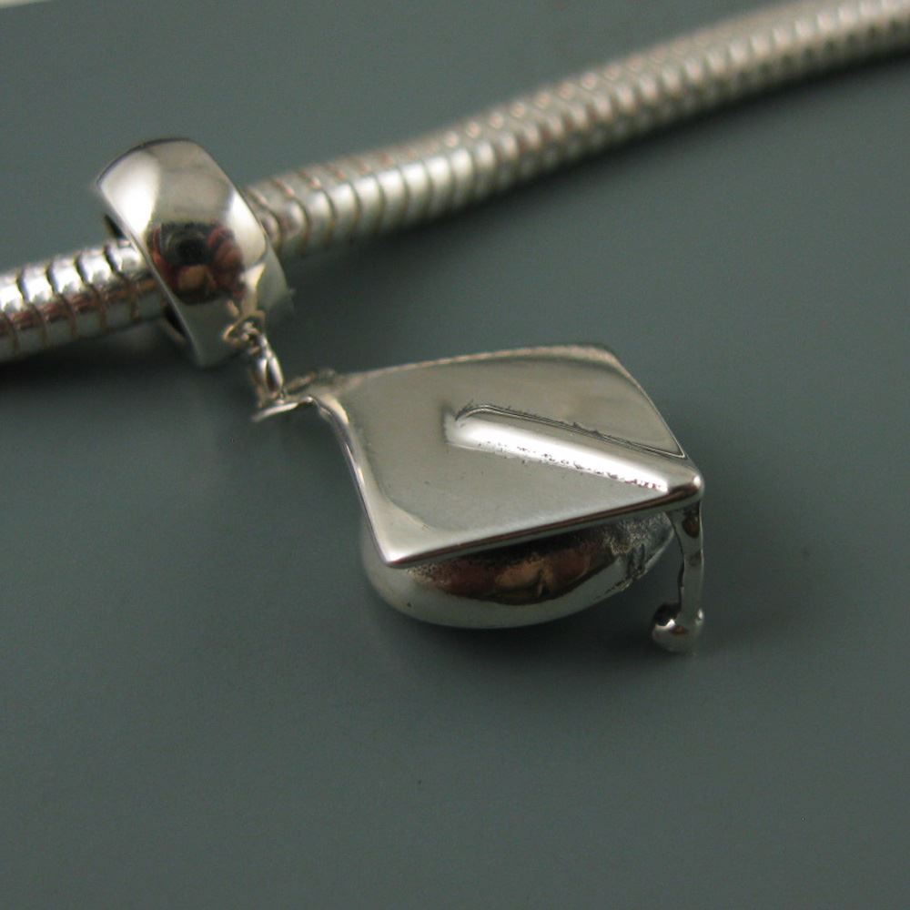 .925 Sterling Silver Graduation Cap Charm Bead