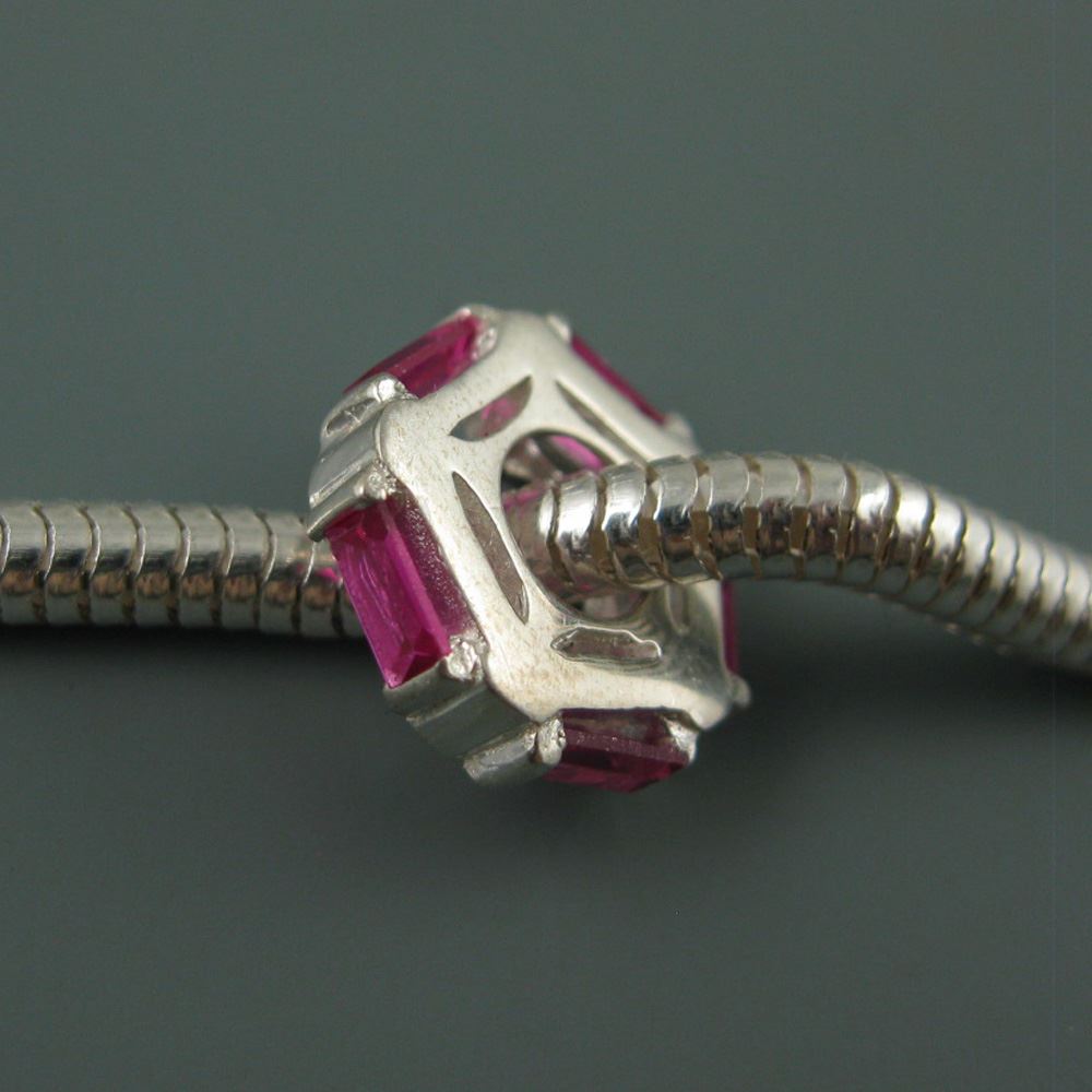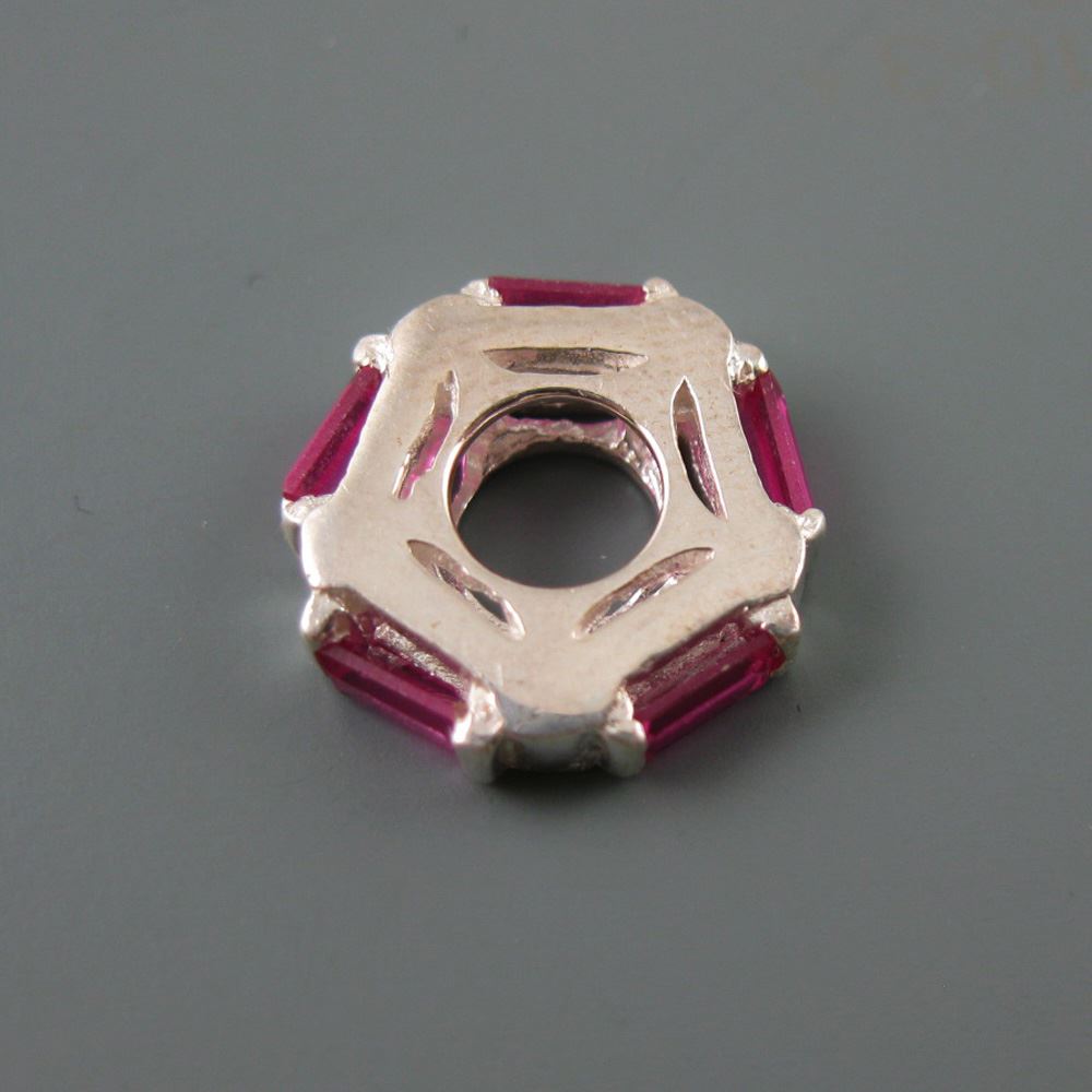 .925 Sterling Silver CZ Magenta Pink Pentagon Charm Bead