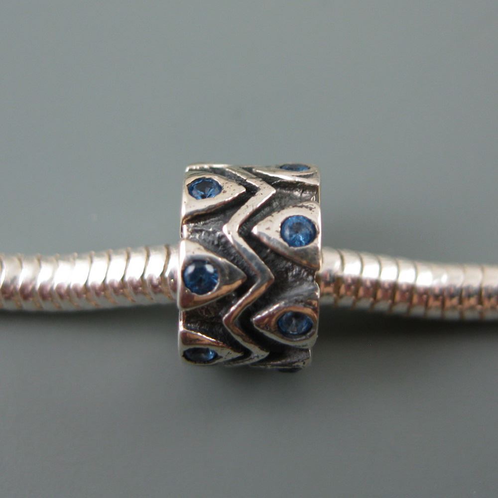 .925 Sterling Silver CZ Zigzag Charm Bead