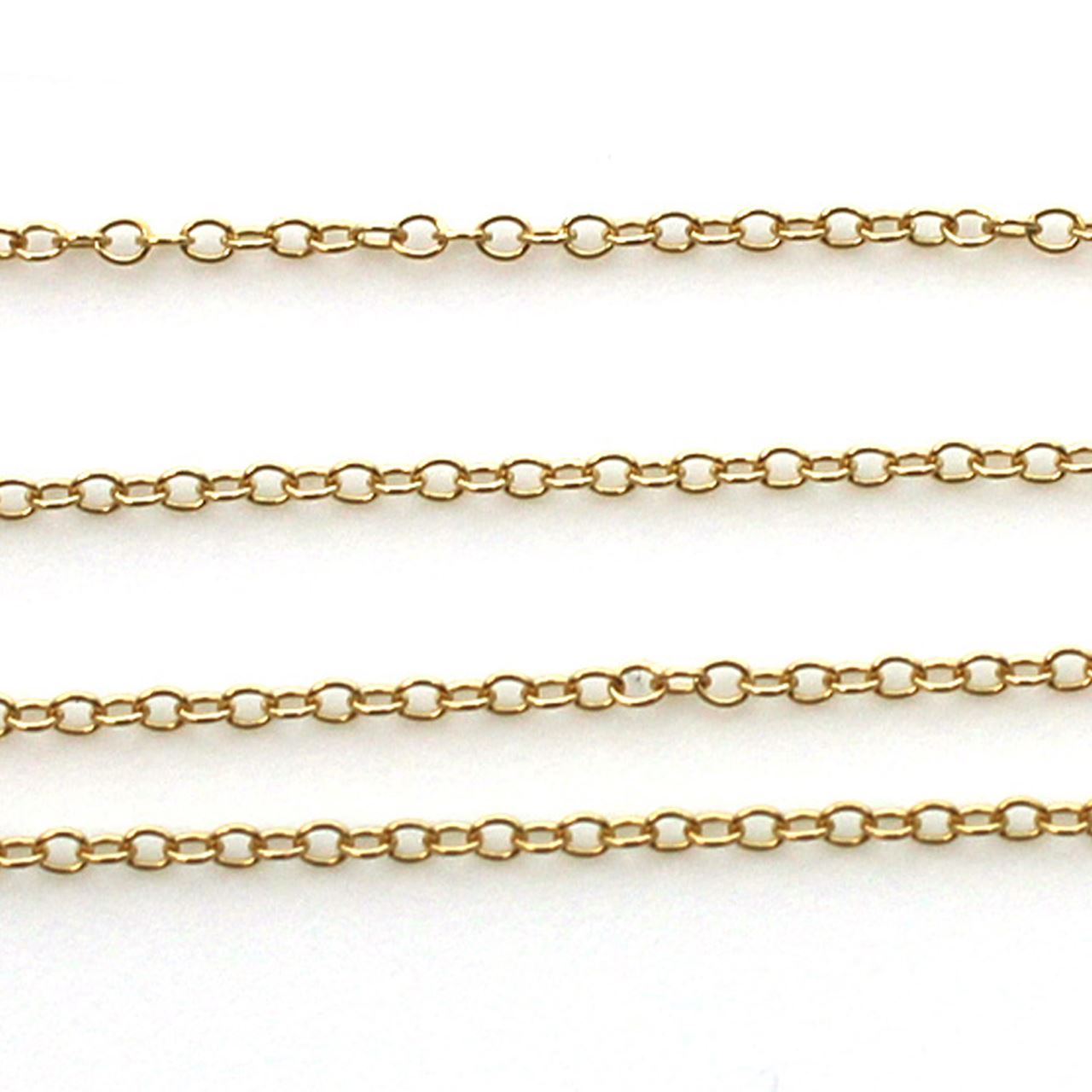 Custom wishlist OK Add to wishlist Add to compare list Gold Over Sterling Silver Chain - Small Round Cable Bulk Chain 1.3x2mm (sold per foot) SKU : 101020-VM OD-2mm long by 1.3mm wide 18 links per inch From $3.28 Add to cart