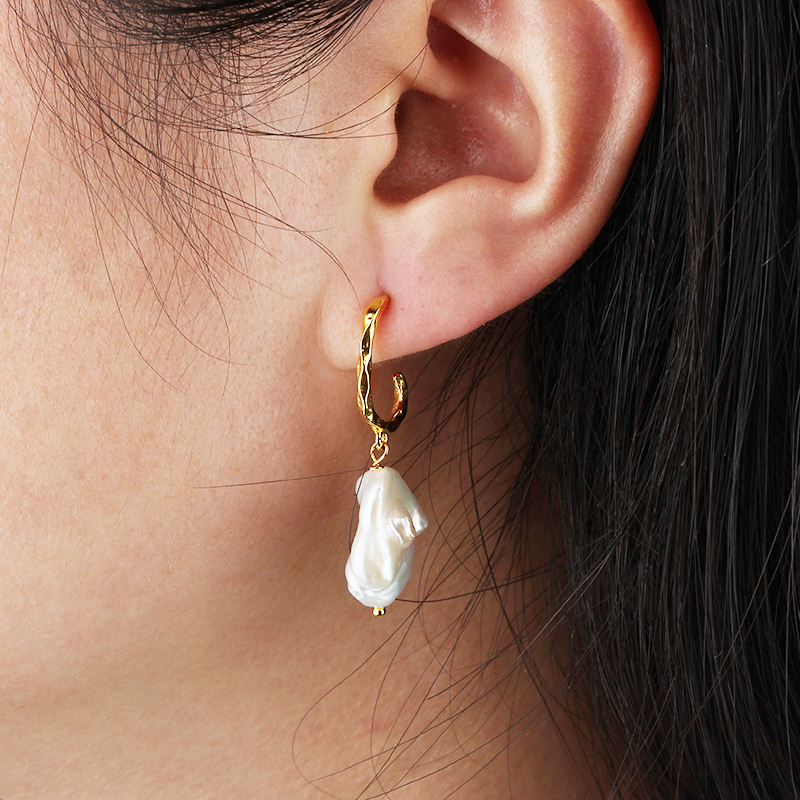 Style: Abstract Textured Half Hoop Earrings with Open Ring