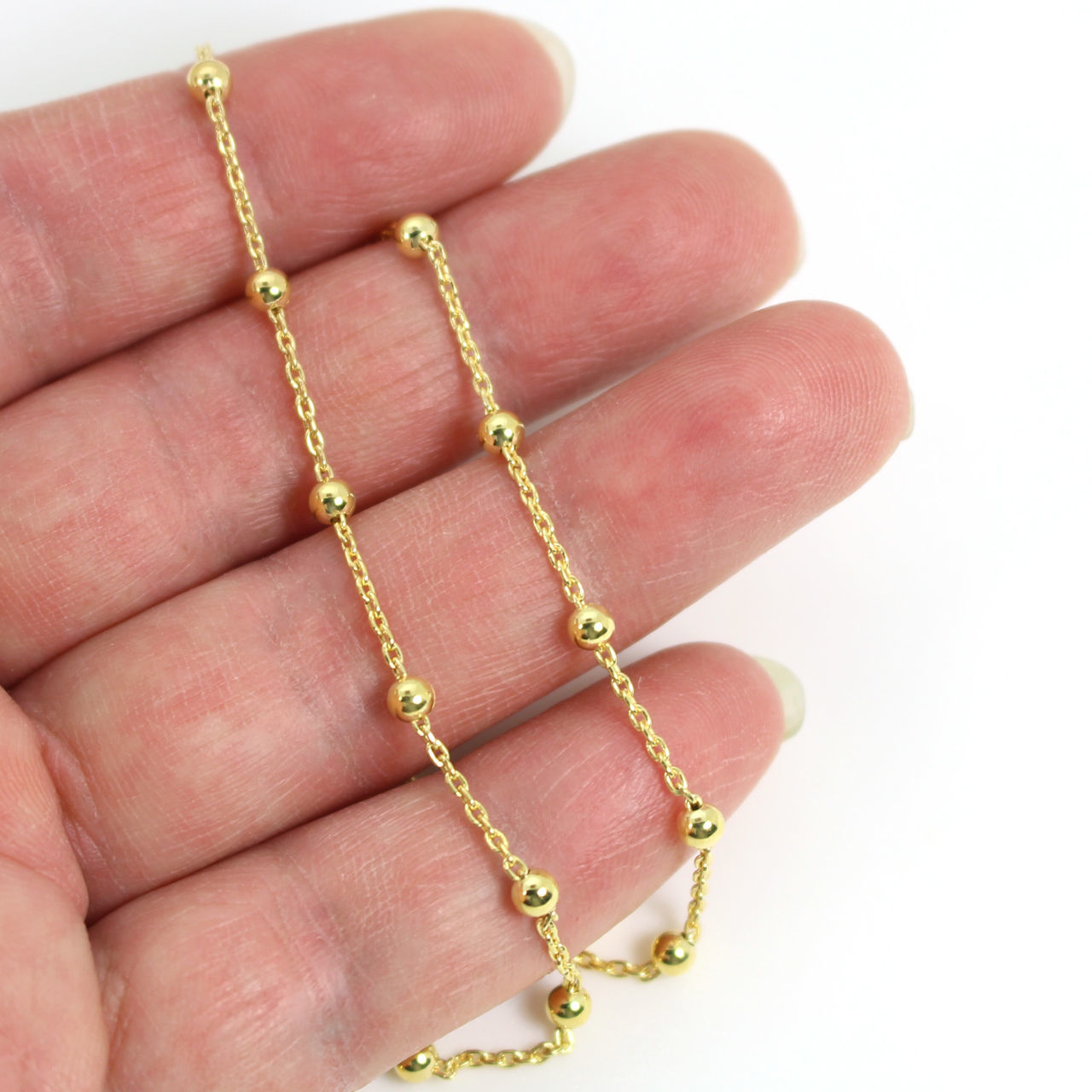 Add to compare list Gold over Sterling Silver Finished Chain - 3mm Ball Satellite Cable Chain SKU : 601049VM Lengths: 7" - 36" Log In for Wholesale Prices