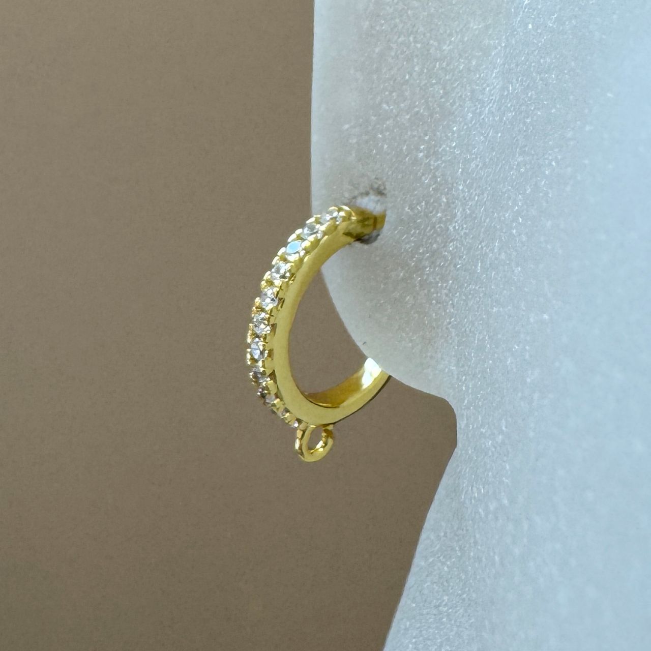 Style: C Shaped Half Hoop CZ Earrings with Open Ring