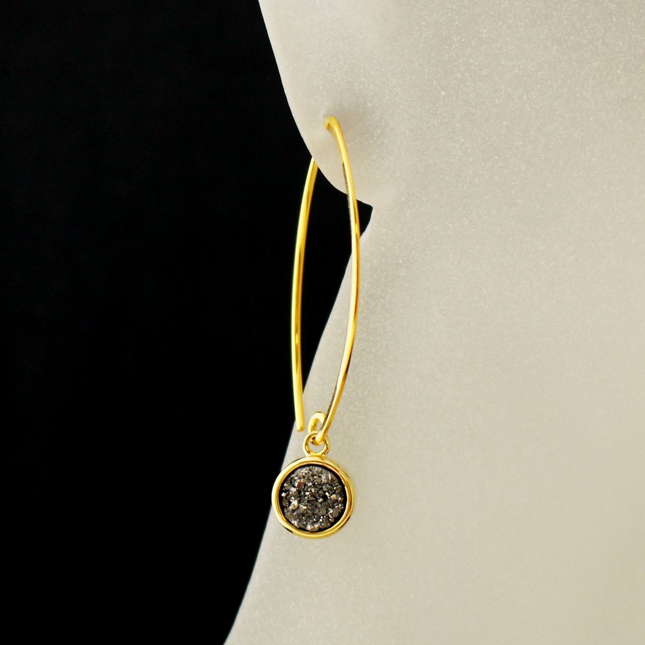 Material: Gold Over 925 Sterling Silver, Titanium Druzy - Silver