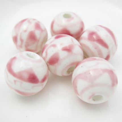 This listing is for 6 pieces of Handpainted pottery Beads, round shape with beautiful design.