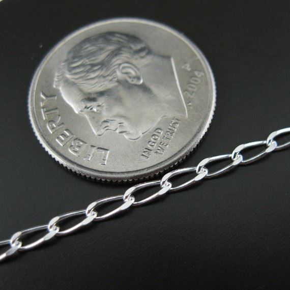 Custom wishlist OK Add to wishlist Add to compare list Sterling Silver Bulk Chain - 2x4mm Diamond Cut Curb Chain (sold per foot) SKU : 101008 OD-4mm long x 2mm wide 7 links per inch From $7.32 Add to cart