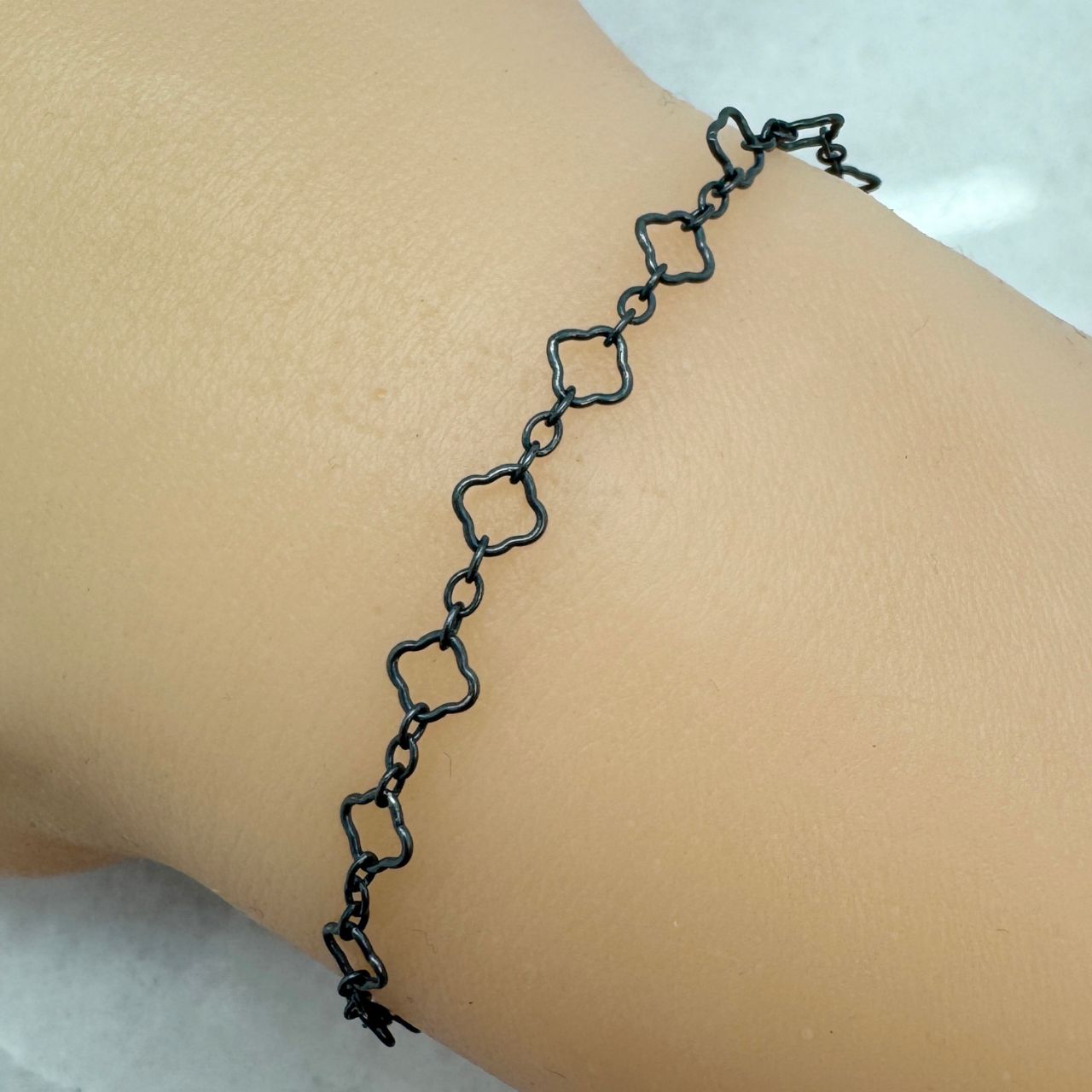 Custom wishlist OK Add to wishlist Add to compare list Oxidized 925 Sterling Silver 3.5mm Clover link Bulk Chain - Sold By The Foot SKU : 101112OX 7 links per inch $15.25 Add to cart