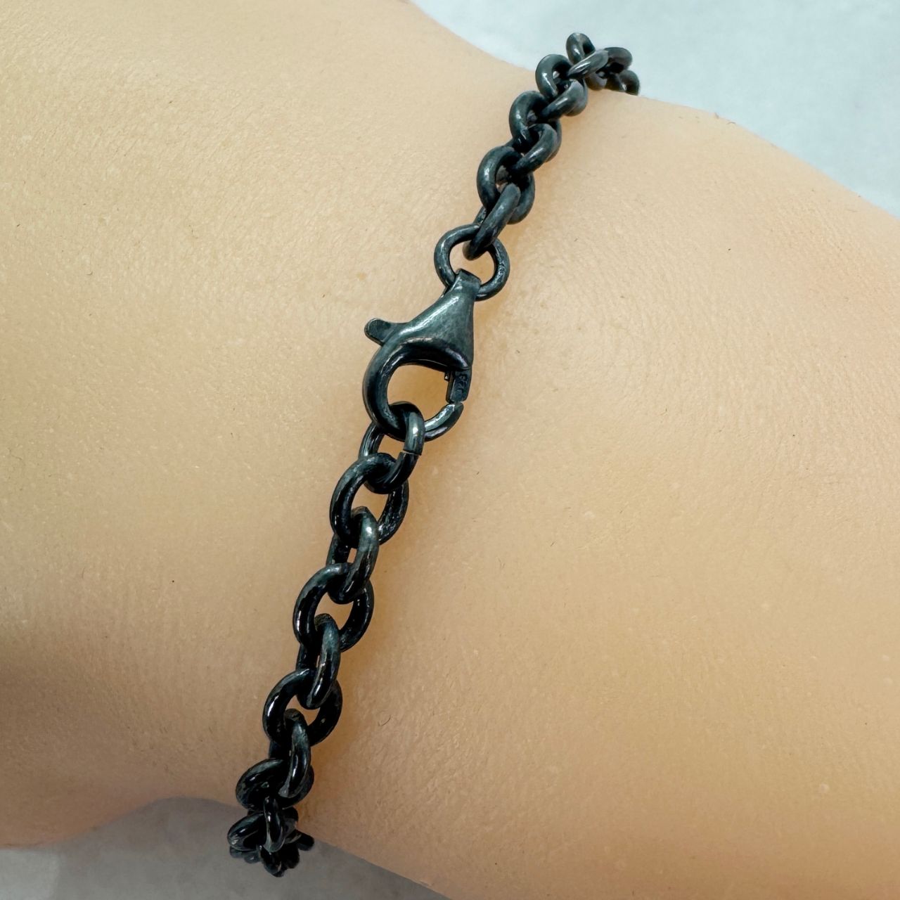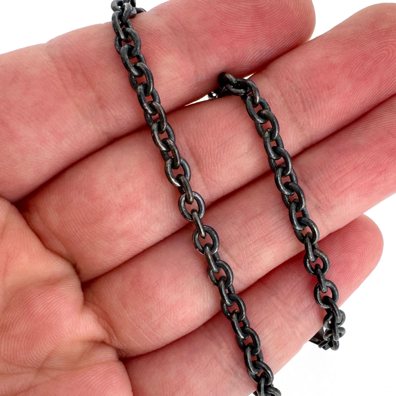 Custom wishlist OK Add to wishlist Add to compare list Oxidized 925 Sterling Silver Finished Chain - Strong Cable Chain SKU : 601053OX Lengths: 7"- 36" Links are 5mm by 4mm $26.25 Add to cart