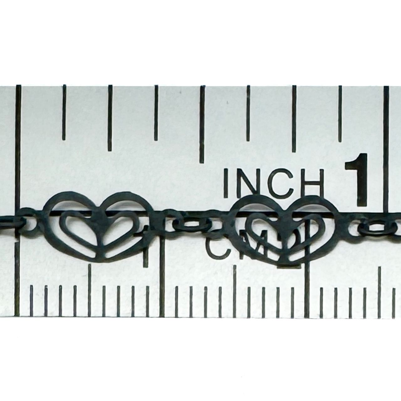 Custom wishlist OK Add to wishlist Add to compare list Oxidized Sterling Silver Bulk Chain - Flat Heart Chain - 4.5mm x 2.7mm (Sold Per Foot) SKU : 101108OX 7 links per inch $7.66 Add to cart
