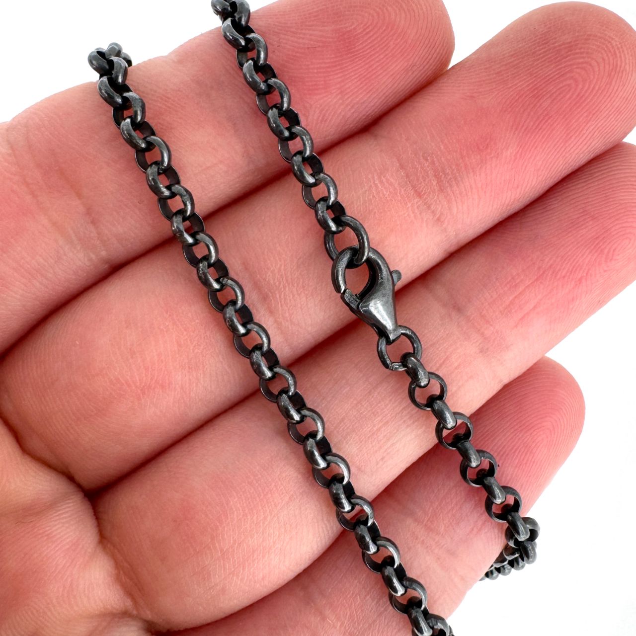 Dark Oxidized Sterling Silver necklace, bracelet, or anklet chain ready to wear. Imported from Italy. It has 925 marks on it.