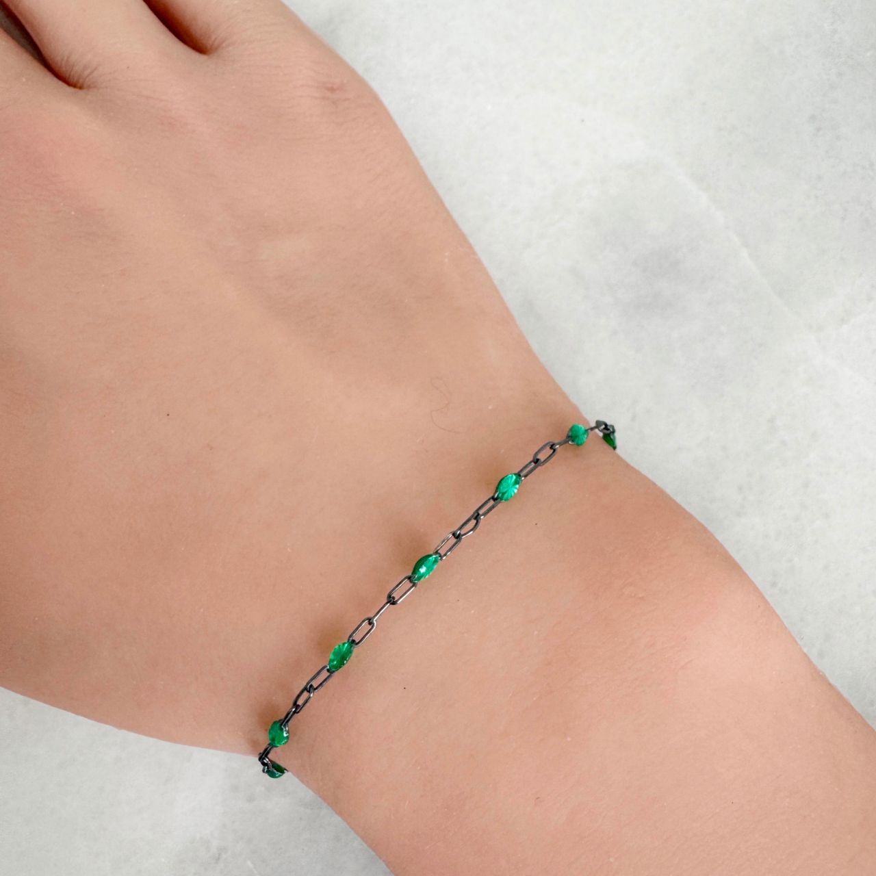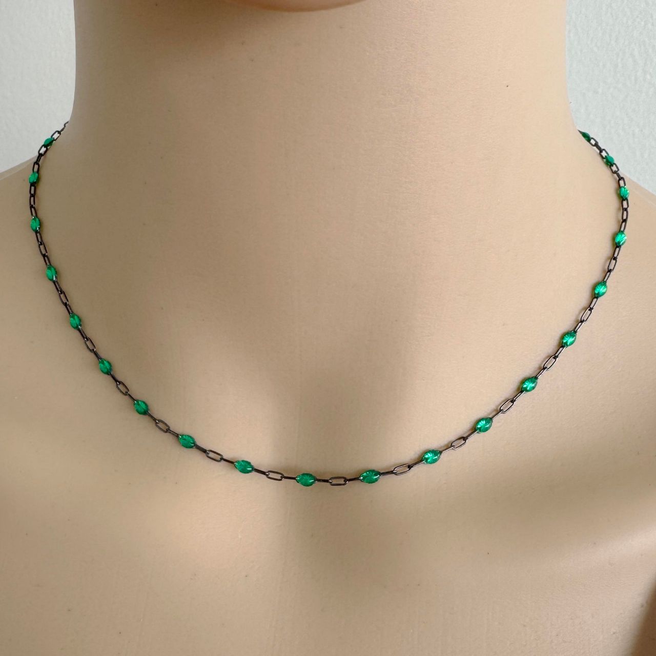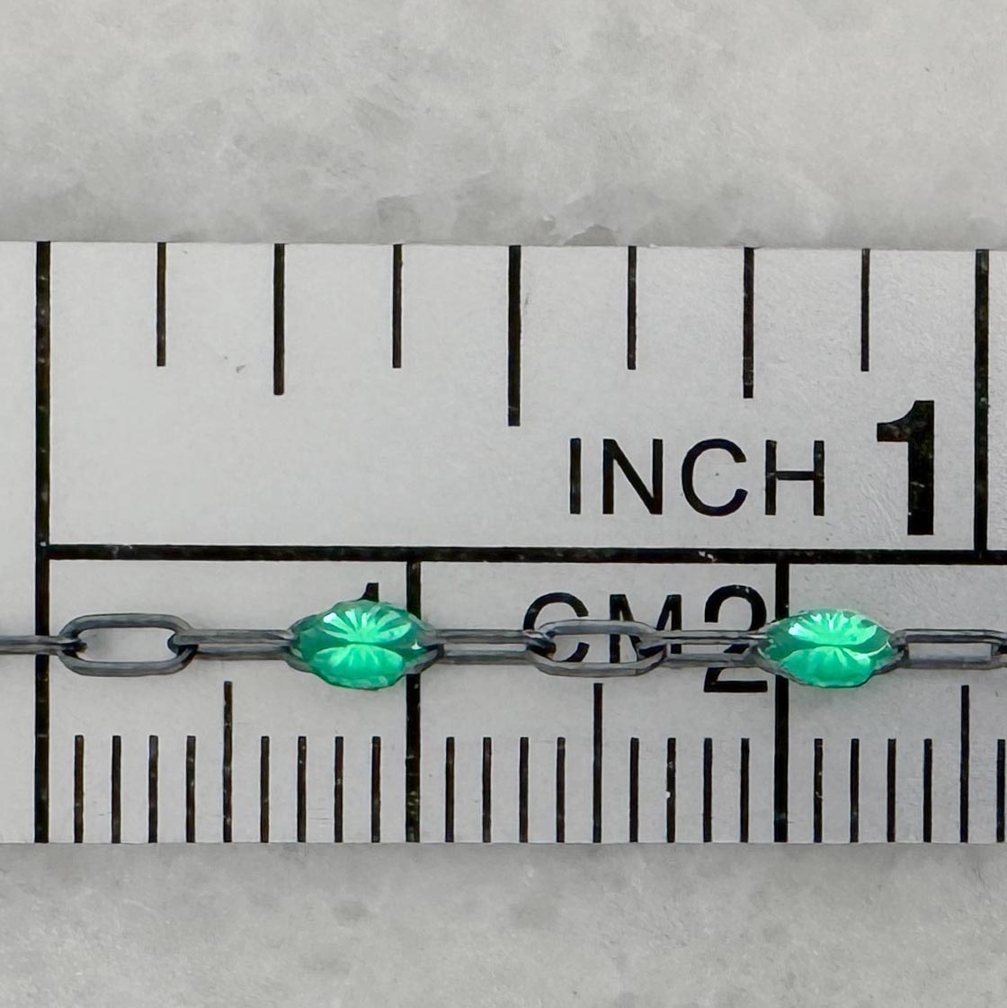 Best Seller Add to compare list 1/20 14K Gold Filled Long Box - 1+3 PaperClip Enamel Chain (Emerald Color) - 3.6mm by 1.6mm (Sold per foot) SKU : 101079GF-EMR May birthstone Emerald color. 8 links per inch Log In for Wholesale Prices