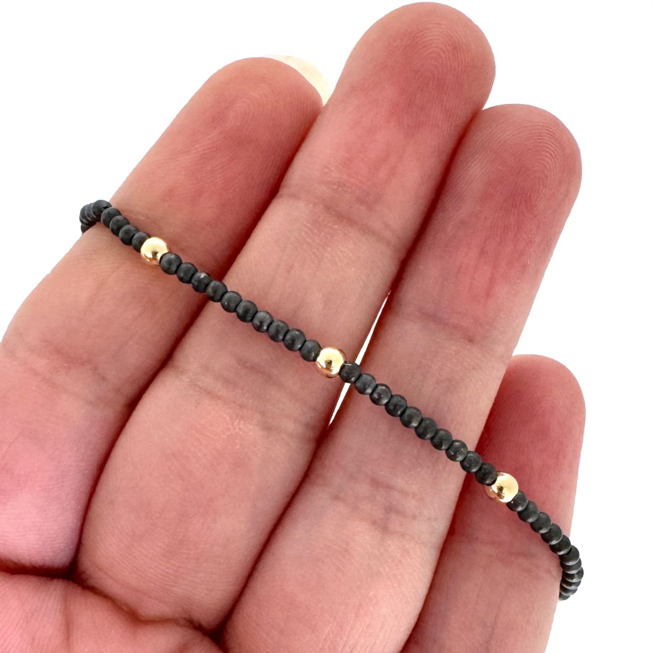 Add to compare list 925 Sterling Silver 2mm Smooth Beaded Stretchy Bracelet with Natrual Gemstone Beads SKU : 721006 Choose from 12 Different Gemstones! 2mm Silver Beads with 2-3mm Natural Gemstone Beads Available Lengths: 6.5" or 7" Log In for Wholesale Prices
