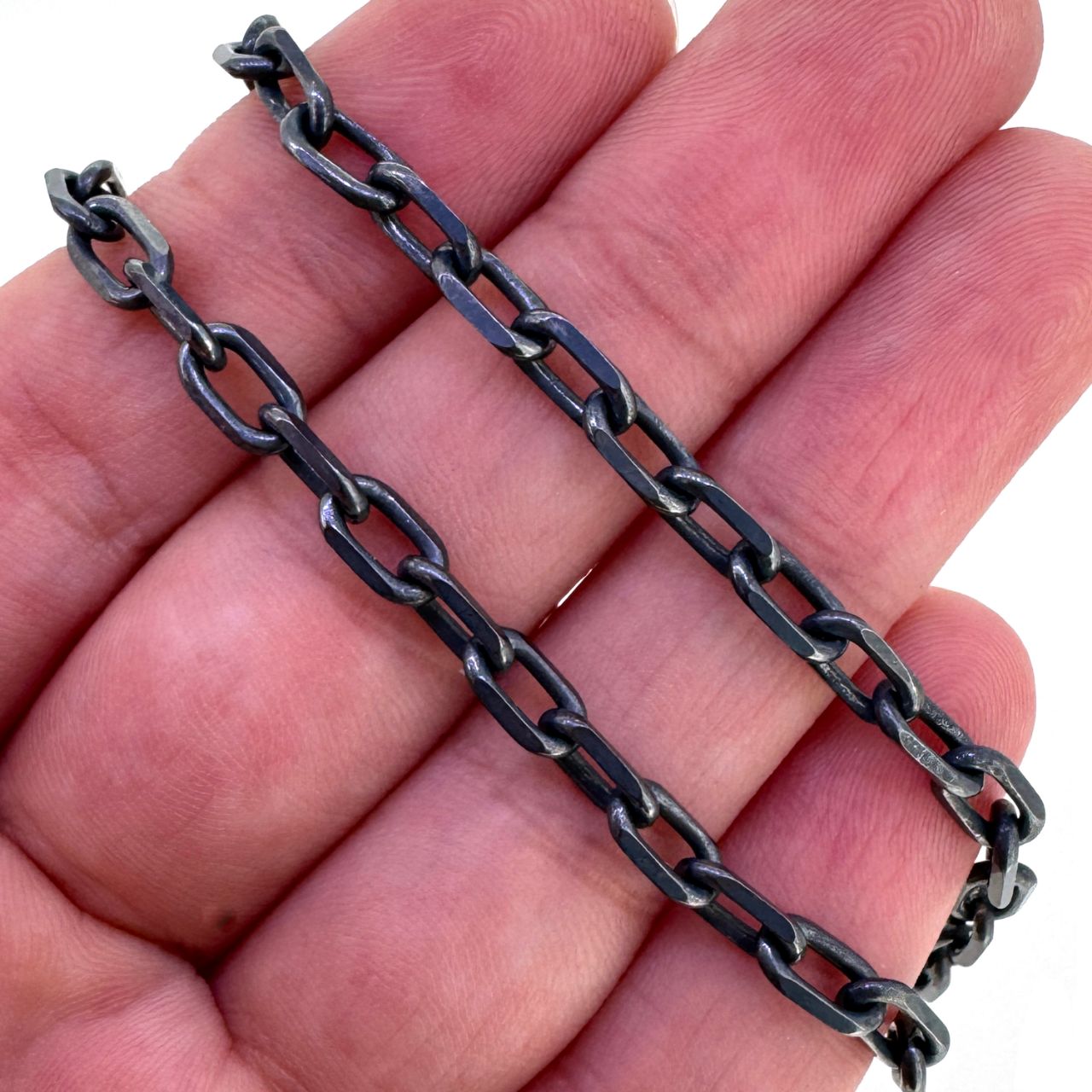 Custom wishlist OK Add to wishlist Add to compare list Oxidized 925 Sterling Silver Finished Jewelry Chain- 7x4mm Diamond Cut Box chain SKU : 601106OX Lengths: 7" - 20" $22.00 Add to cart