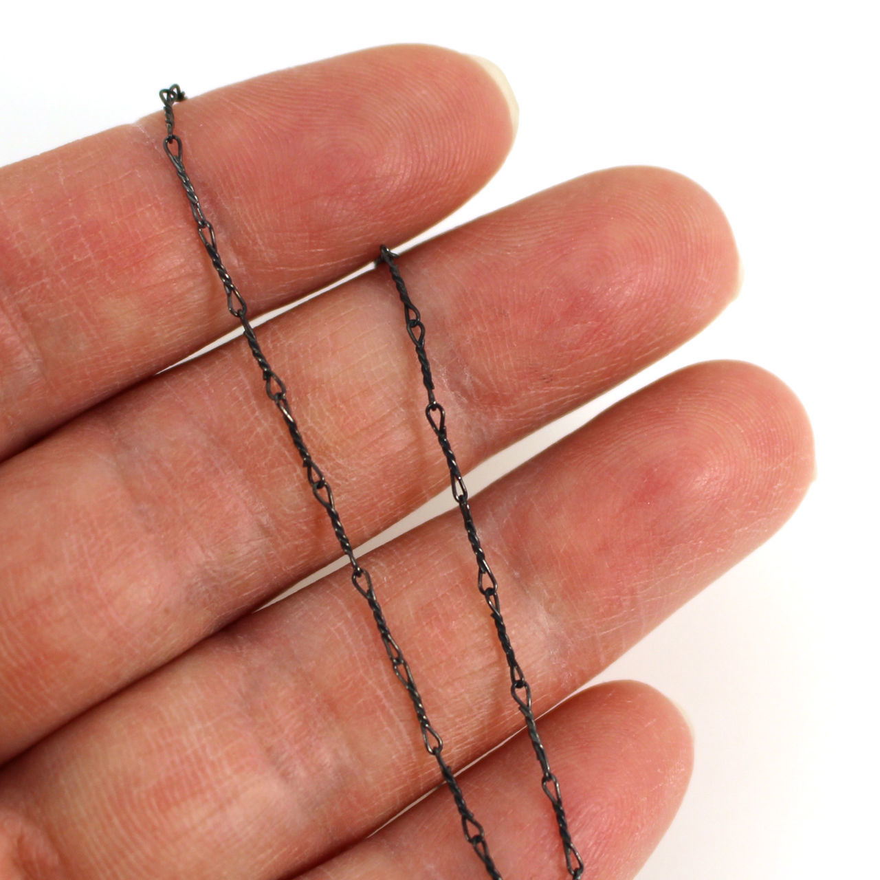 Custom wishlist OK Add to wishlist Add to compare list Oxidized Sterling Silver Bulk Chain - 2.5x2mm Flat Cable Chain (sold per foot) SKU : 101022-OX OD-2.5mm long by 2mm wide 14 links per inch From $2.99 Add to cart