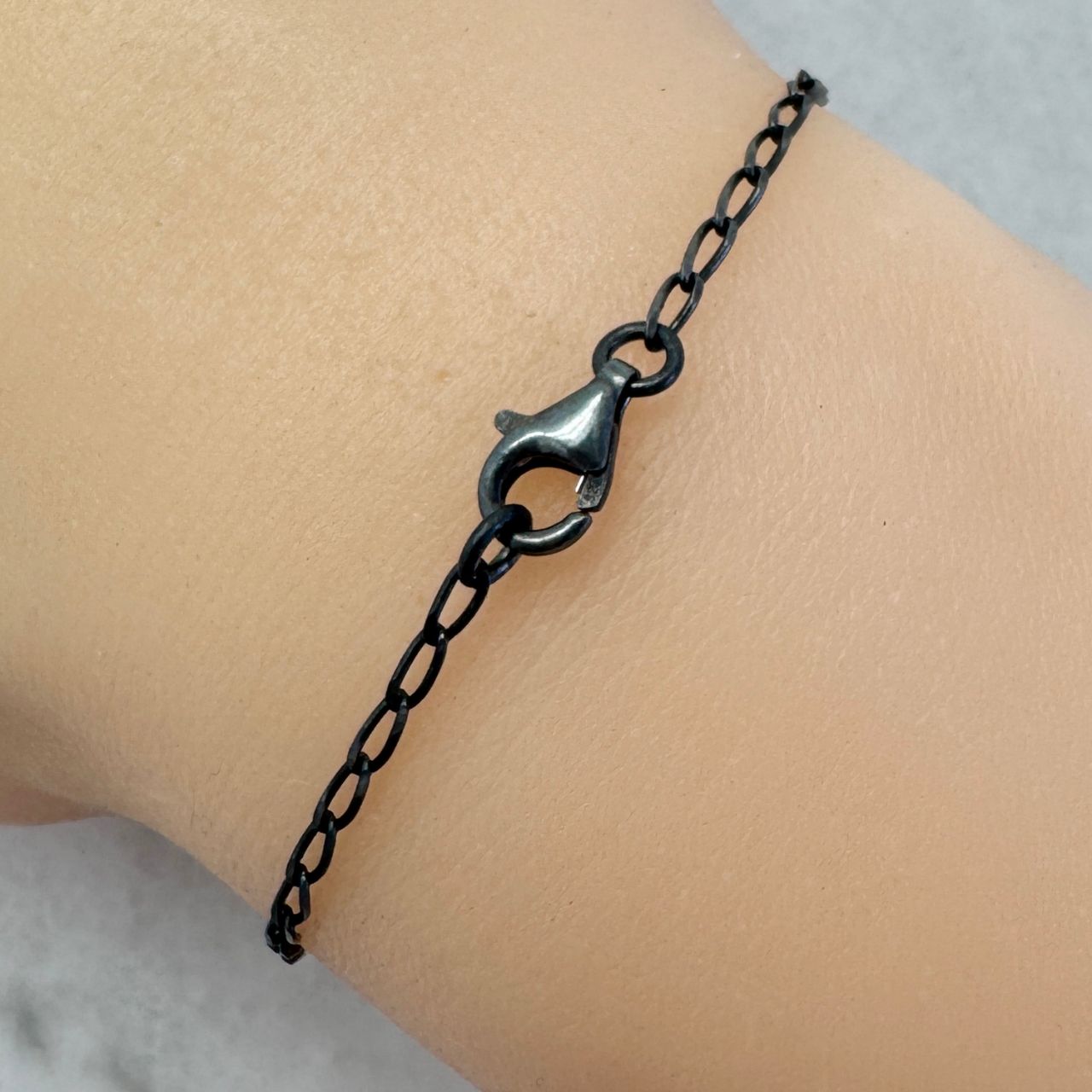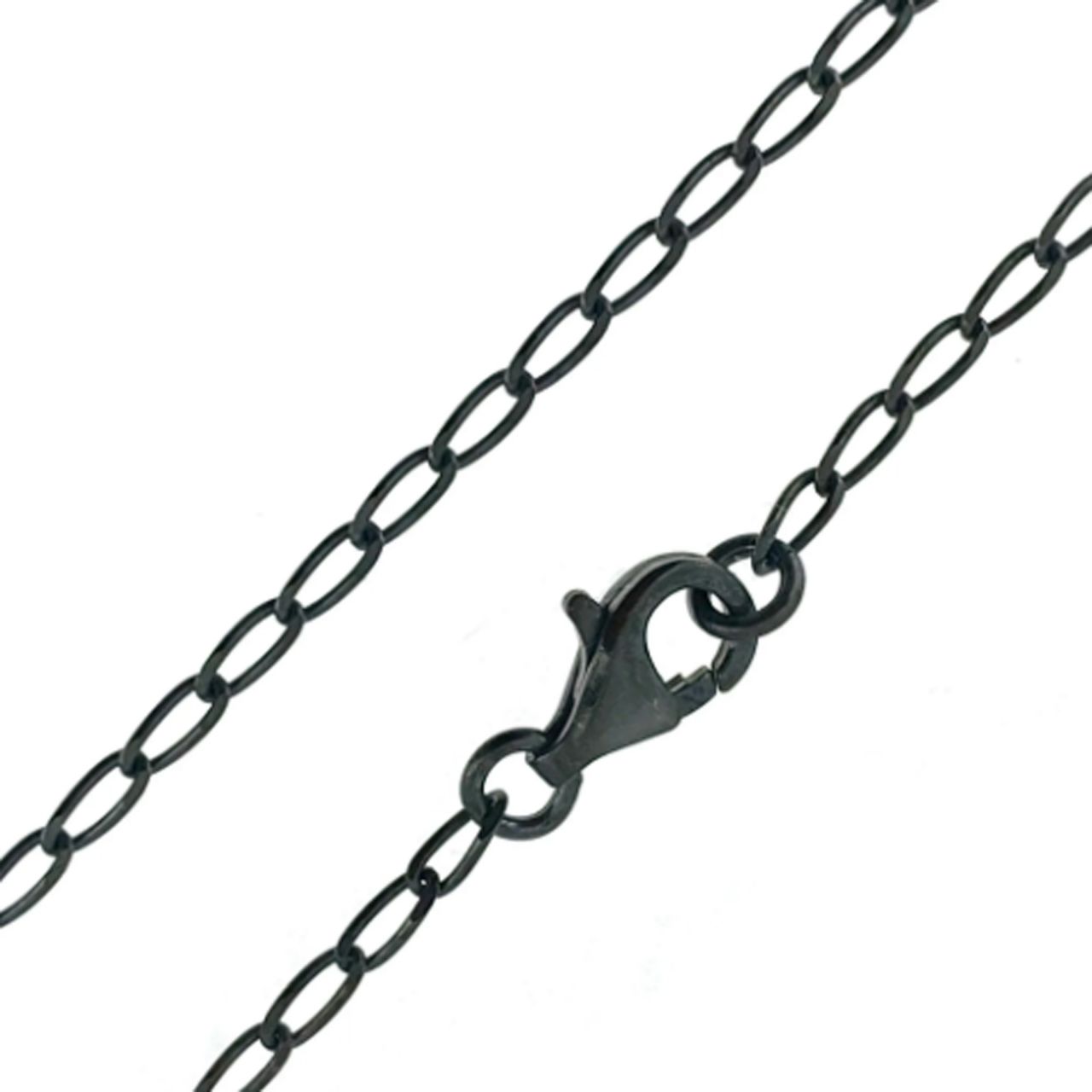 Add to compare list Oxidized Sterling Silver Finished Jewelry Chain - Solid Flat Oval Cable Chain SKU : 601029OX Lengths: 7" - 36", link is 1.7mm by 1.3mm Log In for Wholesale Prices
