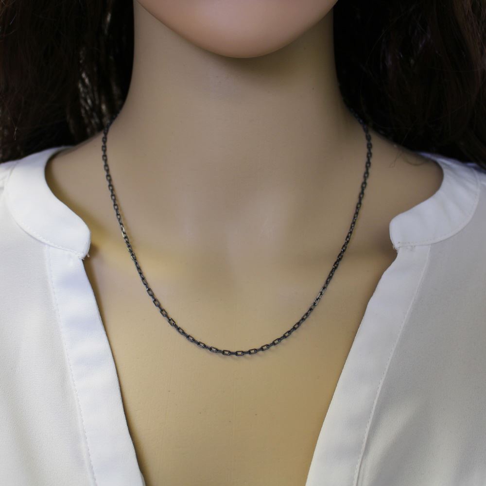 Custom wishlist OK Add to wishlist Add to compare list Oxidized Sterling Silver Finished Chain - Tiny Plain Cable Oval Chain SKU : 601009-OX Lengths: 16"-36", links are 1 mm long by 0.8mm wide $5.80 Add to cart