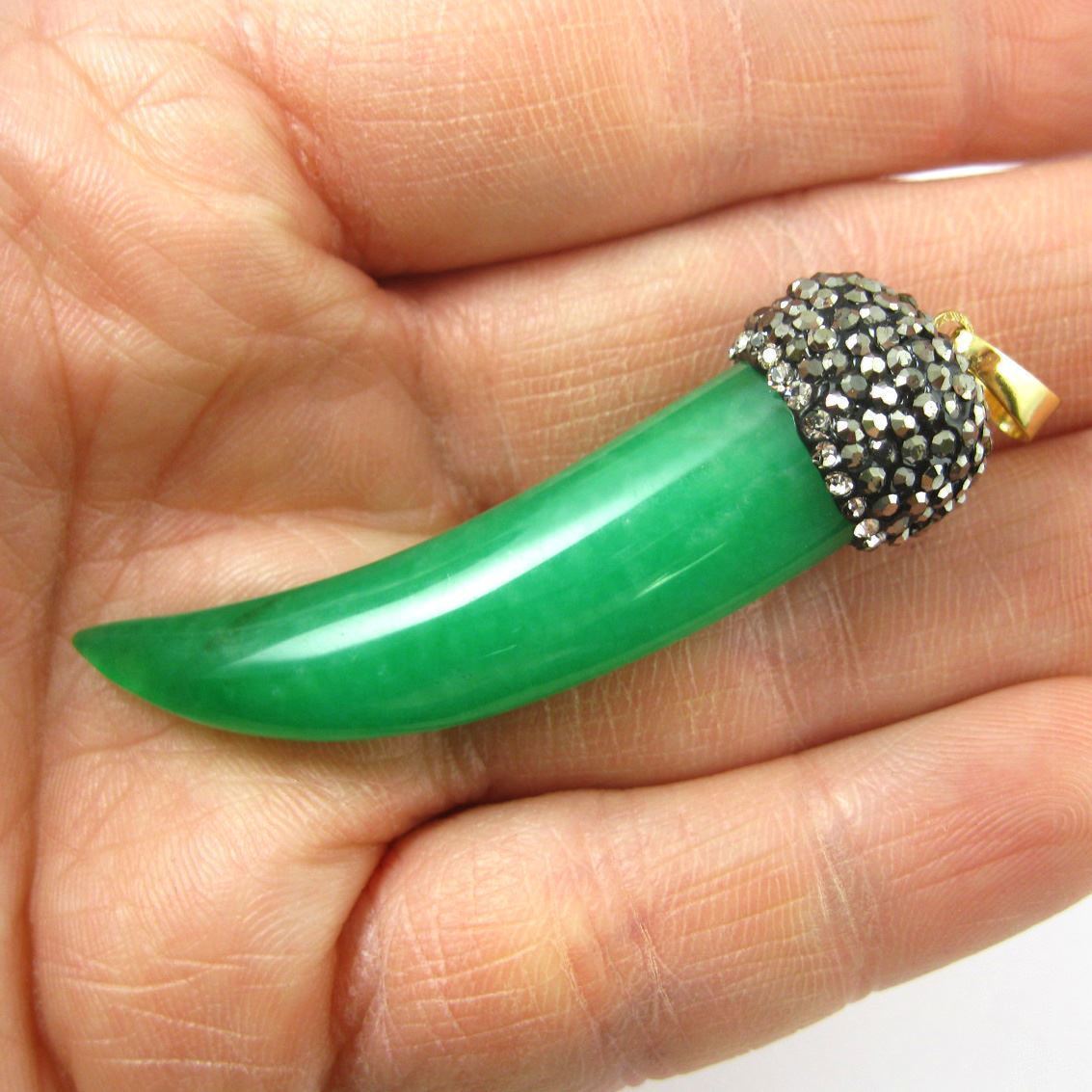 Add to compare list Natural Jasper Leather Wrapped Tusk Pendant - Green Leather with Pave Bail - 70mm SKU : 292077-GRN Log In for Wholesale Prices