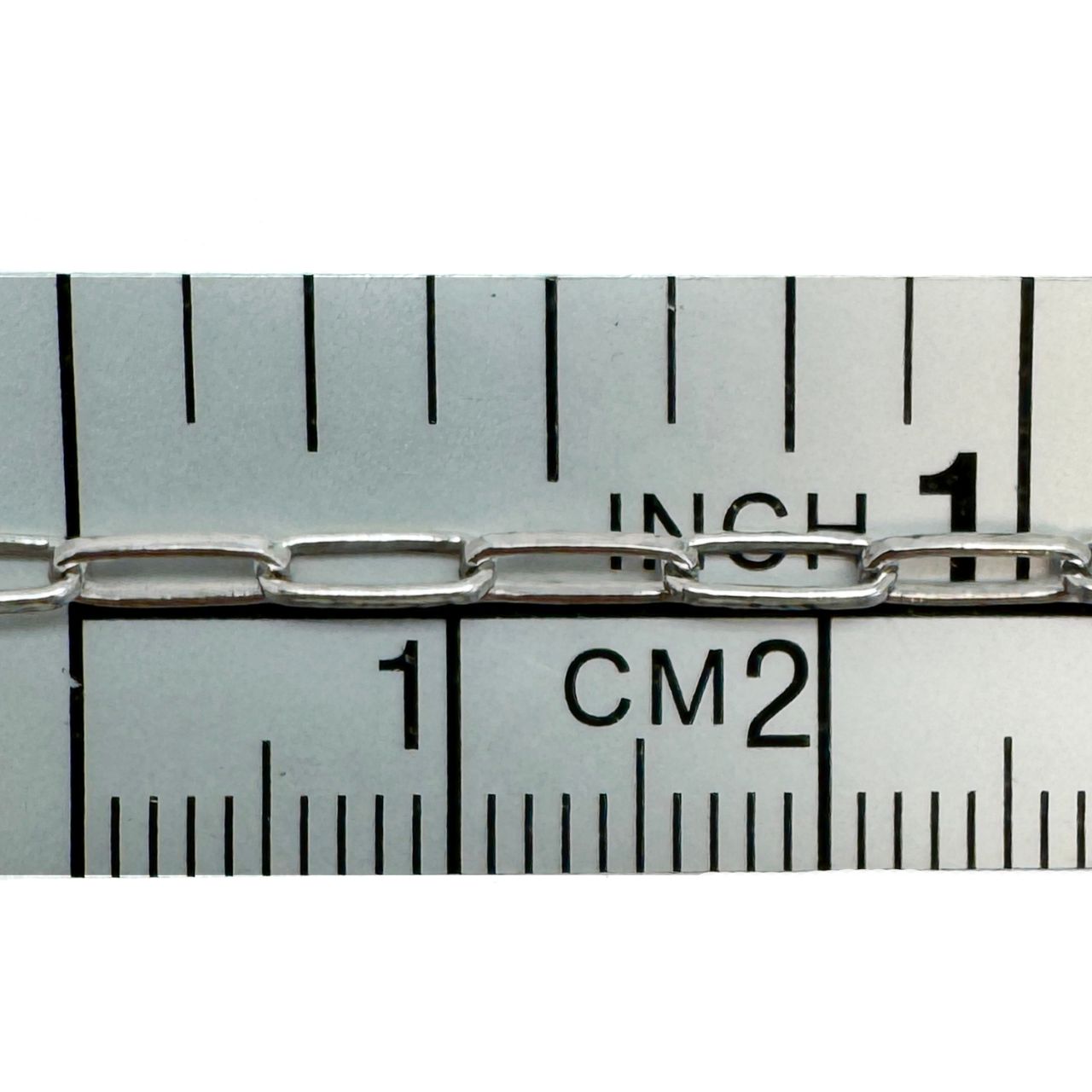 Custom wishlist OK Add to wishlist Add to compare list Sterling Silver Bulk Chain - 1.8x2.2mm Strong Round Cable Chain (sold per foot) SKU : 101019 OD-2.2mm long by 1.8mm wide 16 links per inch. From $5.56 Add to cart