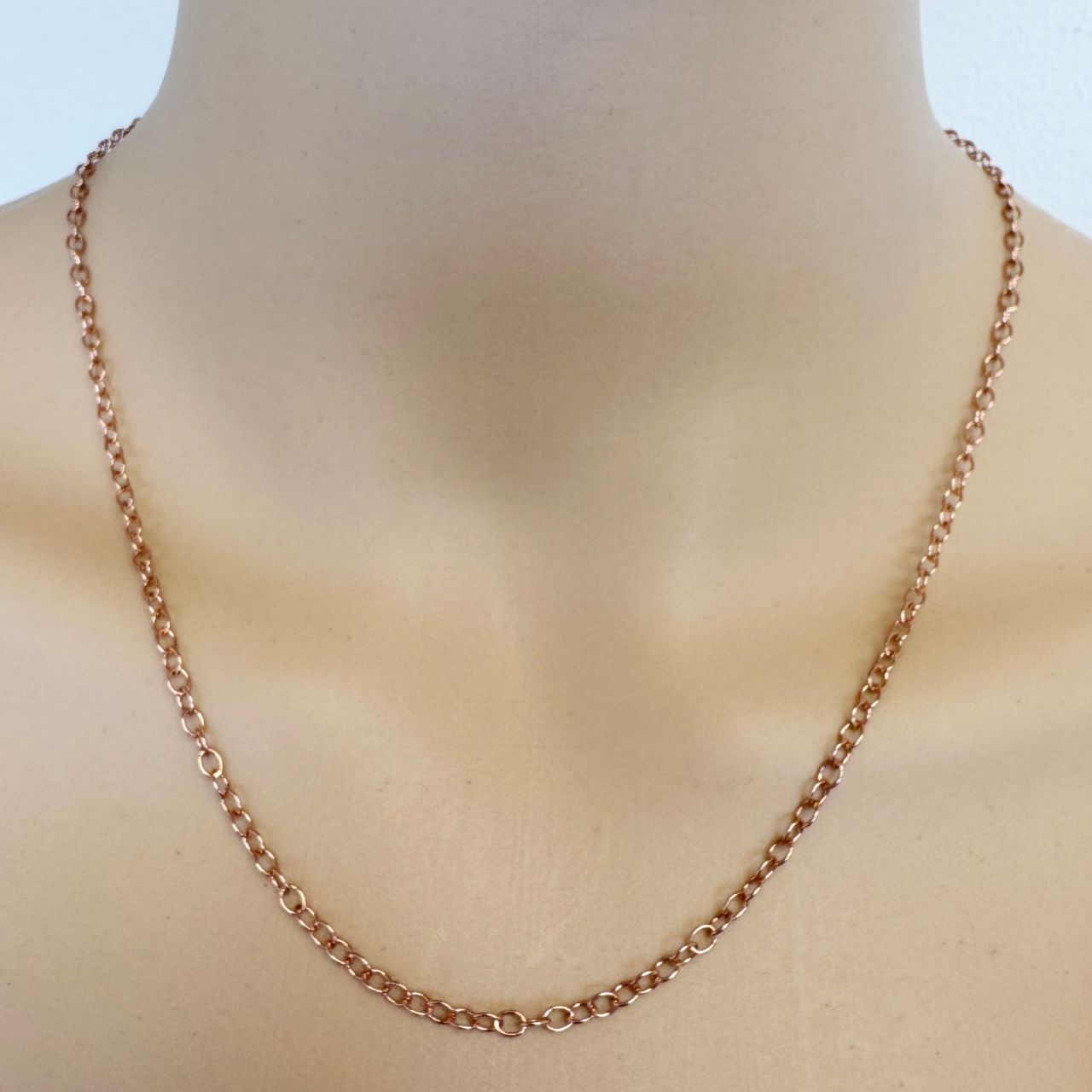 Custom wishlist OK Add to wishlist Add to compare list Rose Gold Over Sterling Silver Finished Chain - Strong Flat Cable Chain SKU : 601051-RG Lengths: 16" - 36" links are 2.4mm long and 2mm wide. $14.25 Add to cart