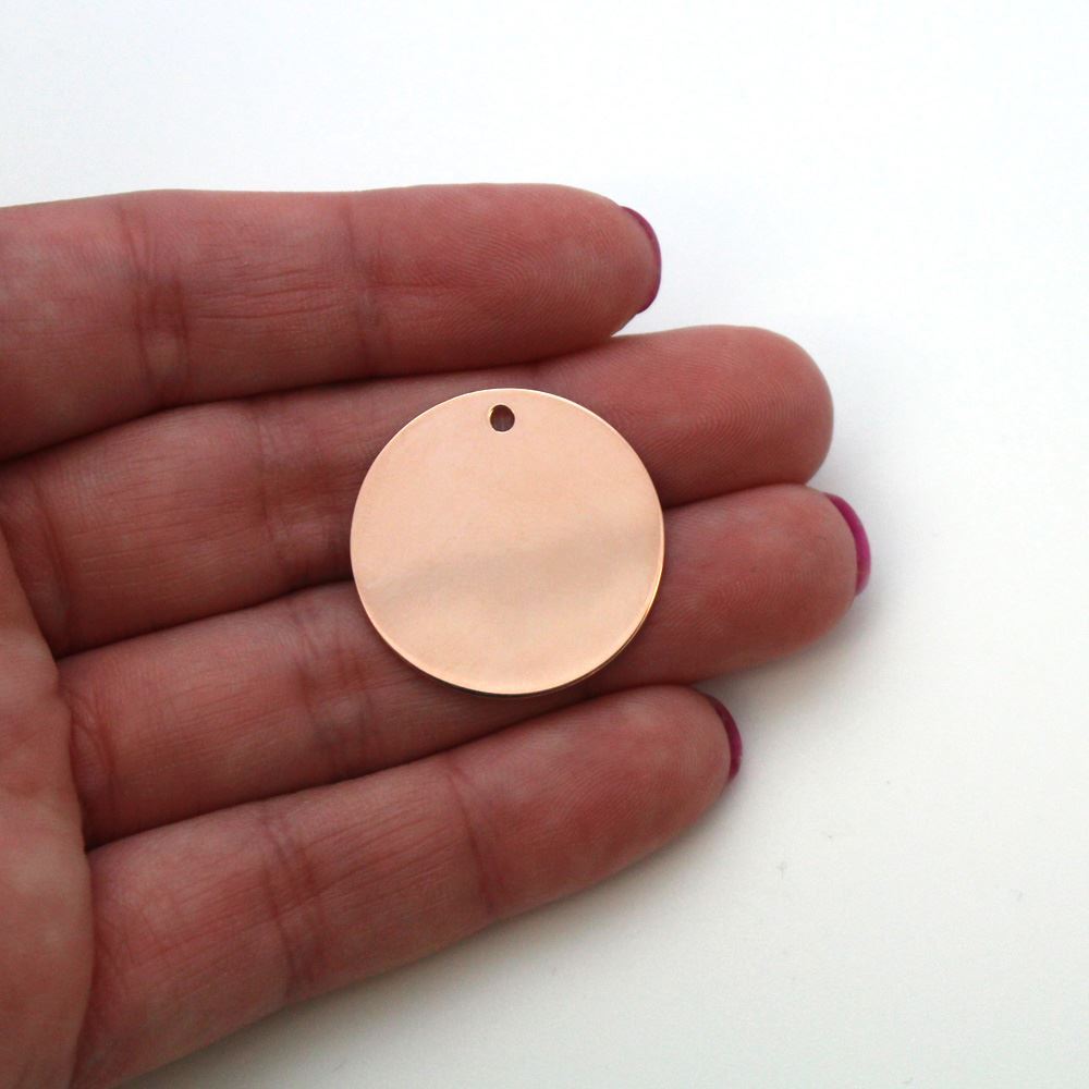 Measurement: 25mm in diameter, 0.5mm in thickness. Hole is 1mm (18 gauge)