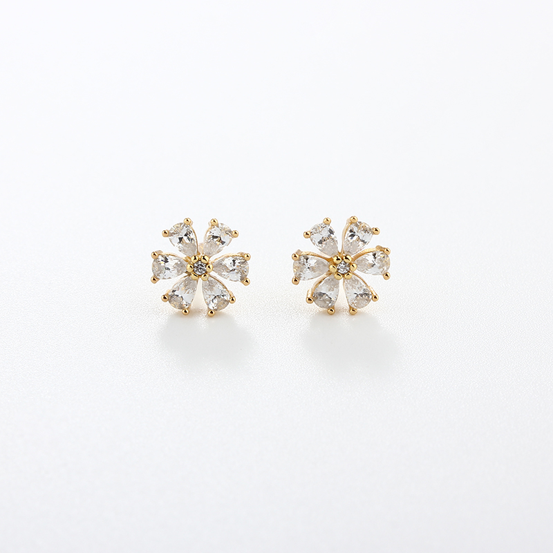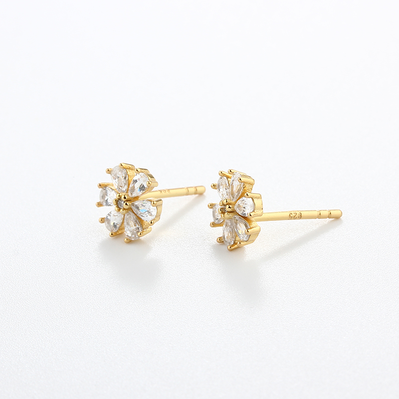 Style: Flower Shaped Studs With CZ Stones - Butterfly Backs