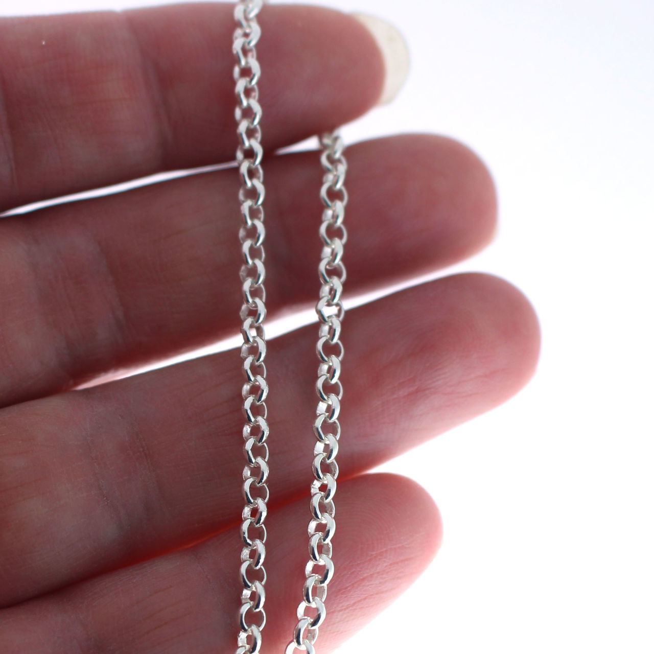 Custom wishlist OK Add to wishlist Add to compare list Sterling Silver Finished Chain - 3mm Rolo Chain SKU : 601062 Lengths: 7" - 36", Rolo link is 3mm $12.19 Add to cart