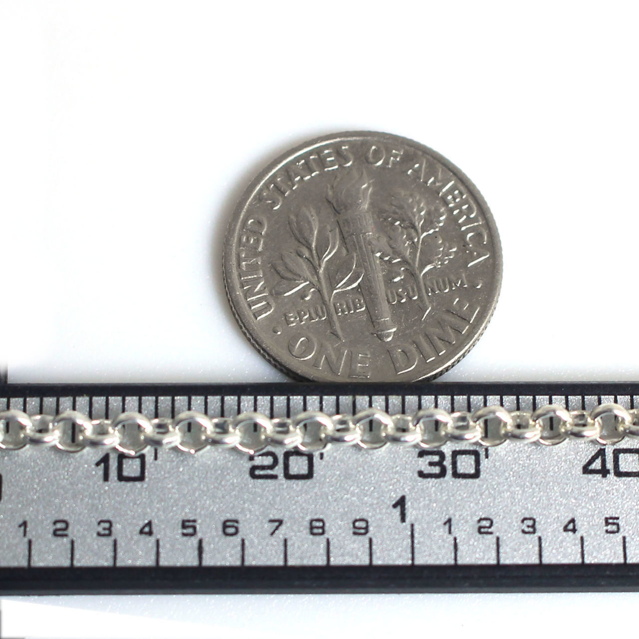 Custom wishlist OK Add to wishlist Add to compare list Sterling Silver Bulk Chain - 3.4mm Strong Rolo Chain (sold per foot) SKU : 101077 Very similar size to 101003 -3.5mm rolo chain, but much stronger. 3.4mm rolo, 11 links per inch. From $16.65 Add to cart