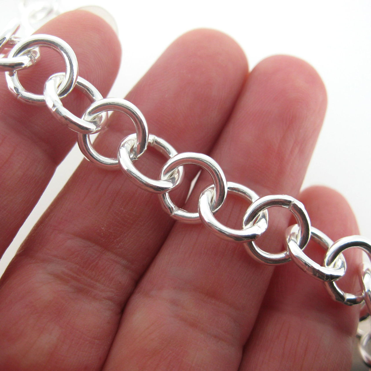 Add to compare list 925 Sterling Silver Bulk Chain - 5x4mm Heavy Cable Chain (sold per foot) SKU : 101053 5mm x 4mm 8 links per inch Log In for Wholesale Prices