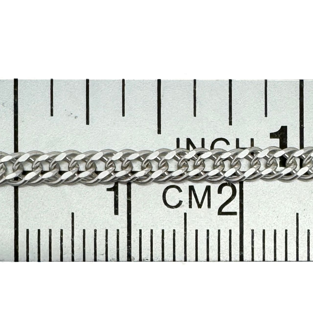 Add to compare list Sterling Silver Finished Chain - Double Diamond Cut Curb Chain SKU : 601035 Lengths: 7" - 36" 4.1mm x 2.8mm wide Log In for Wholesale Prices